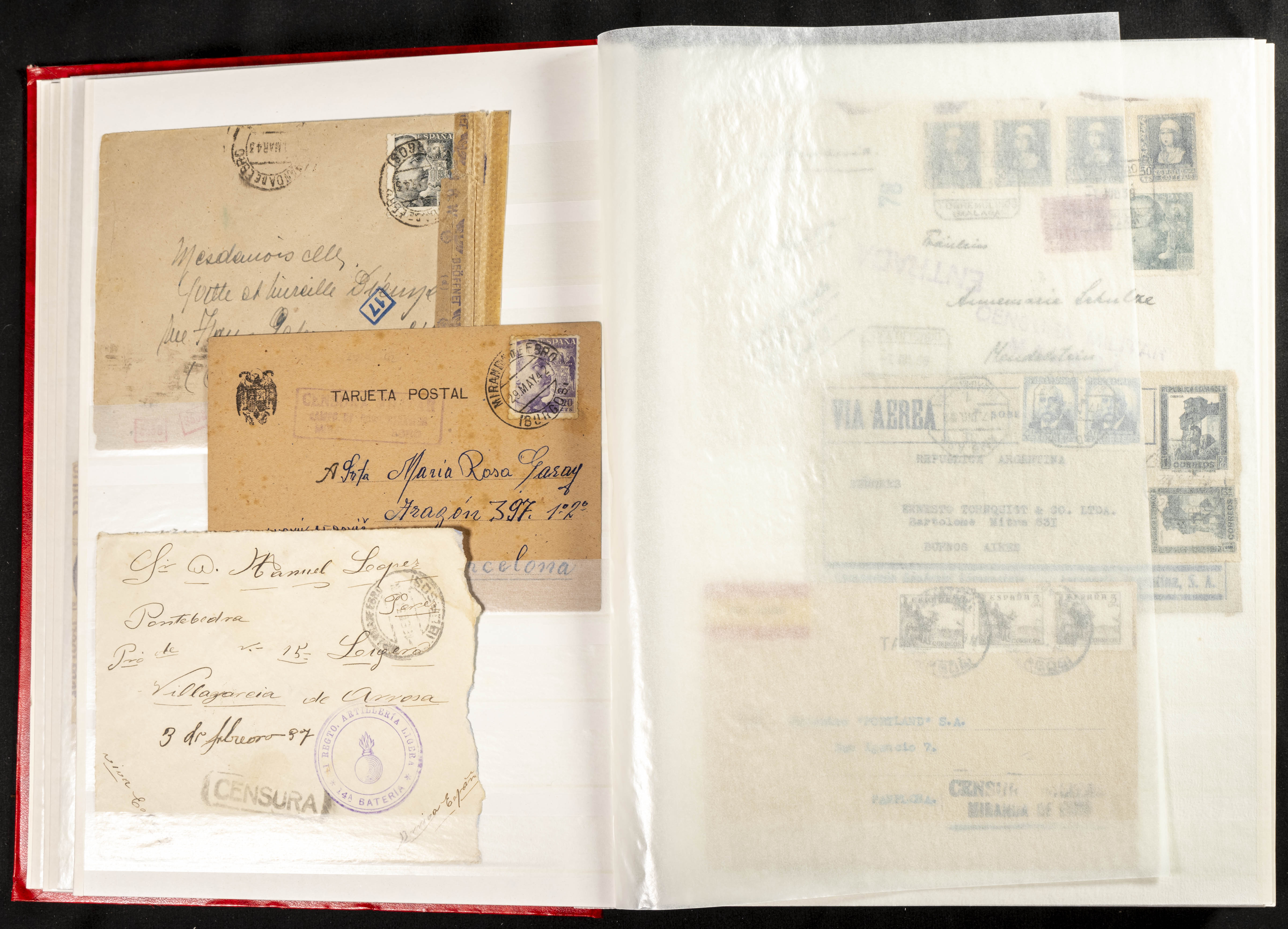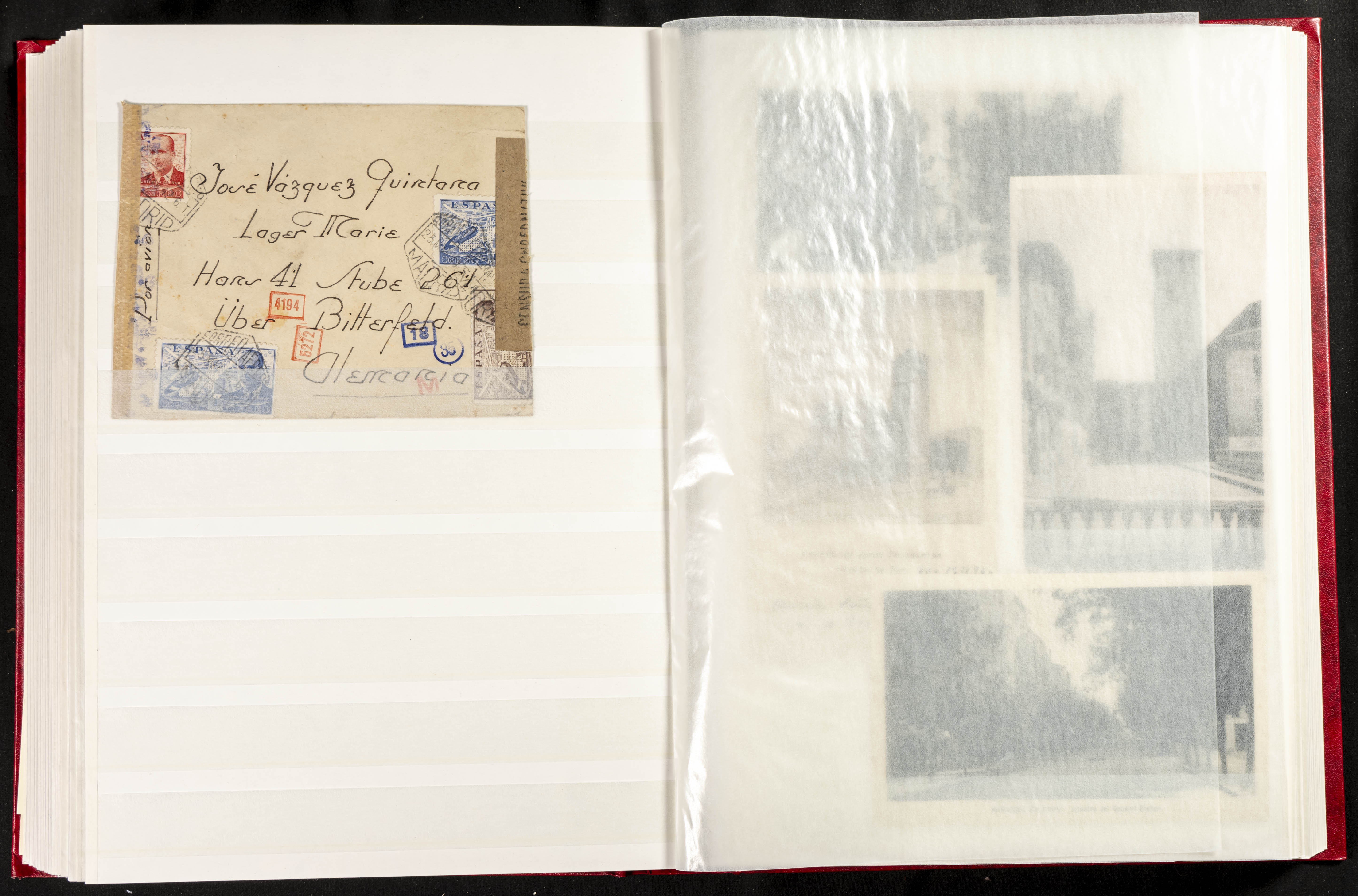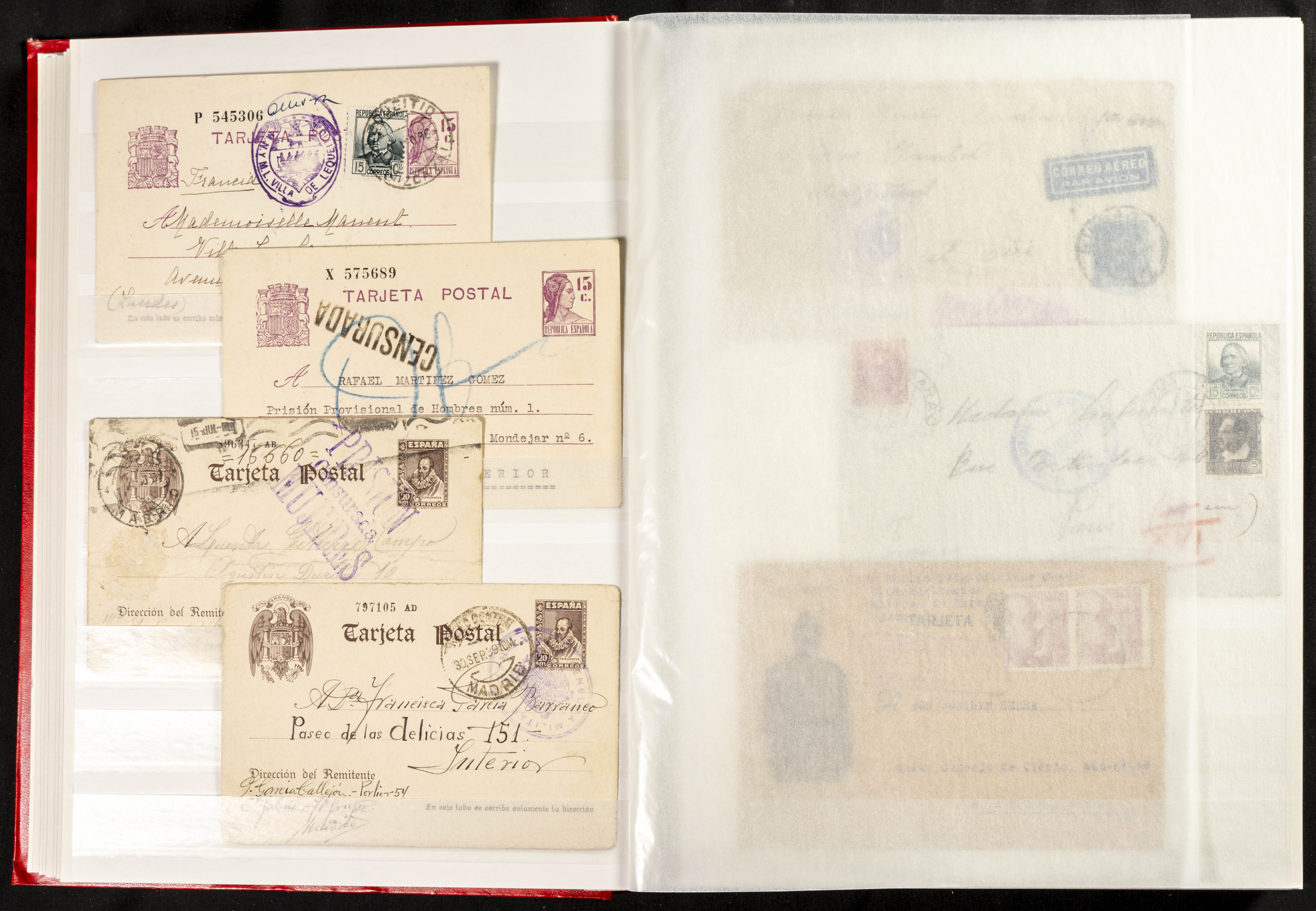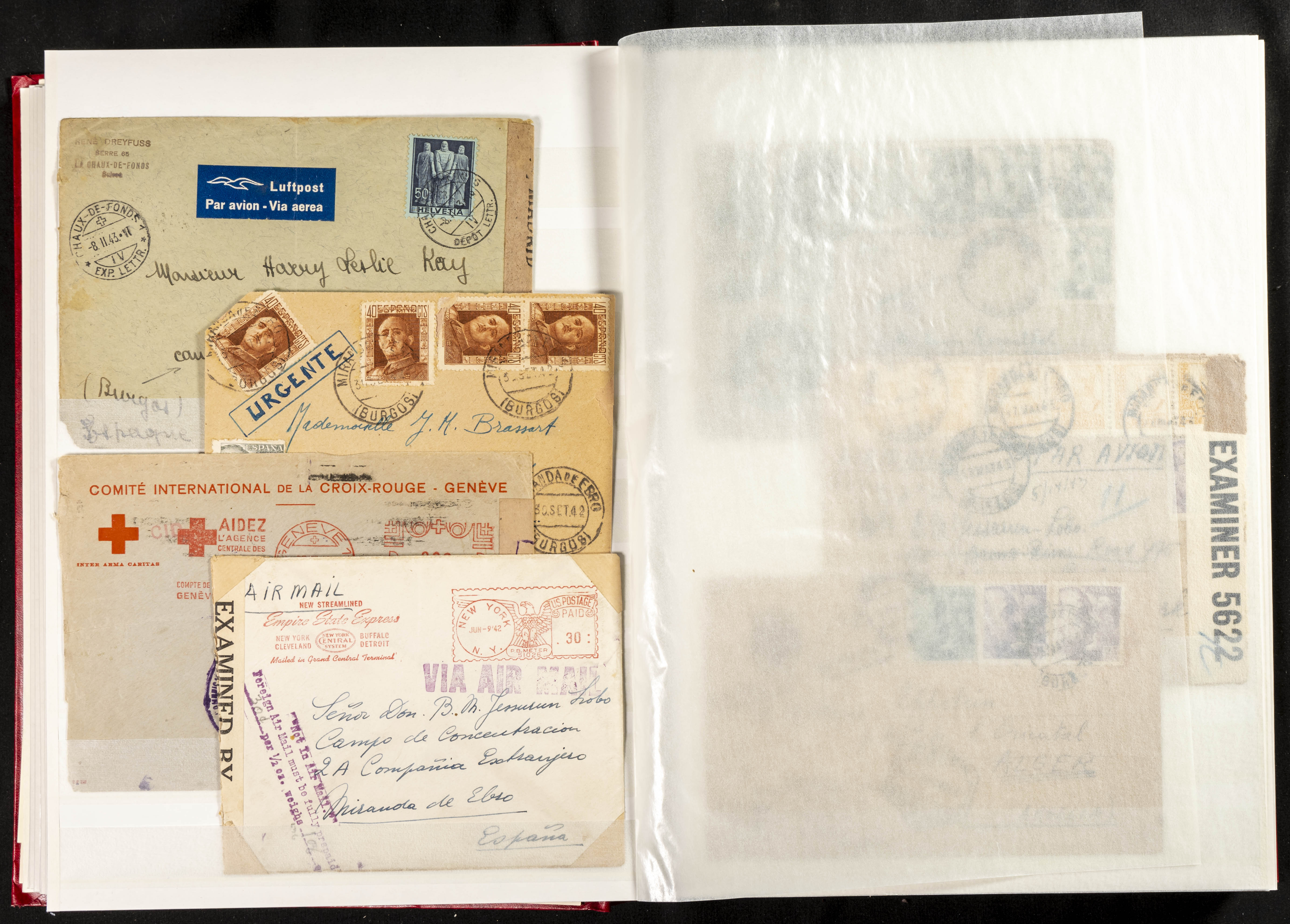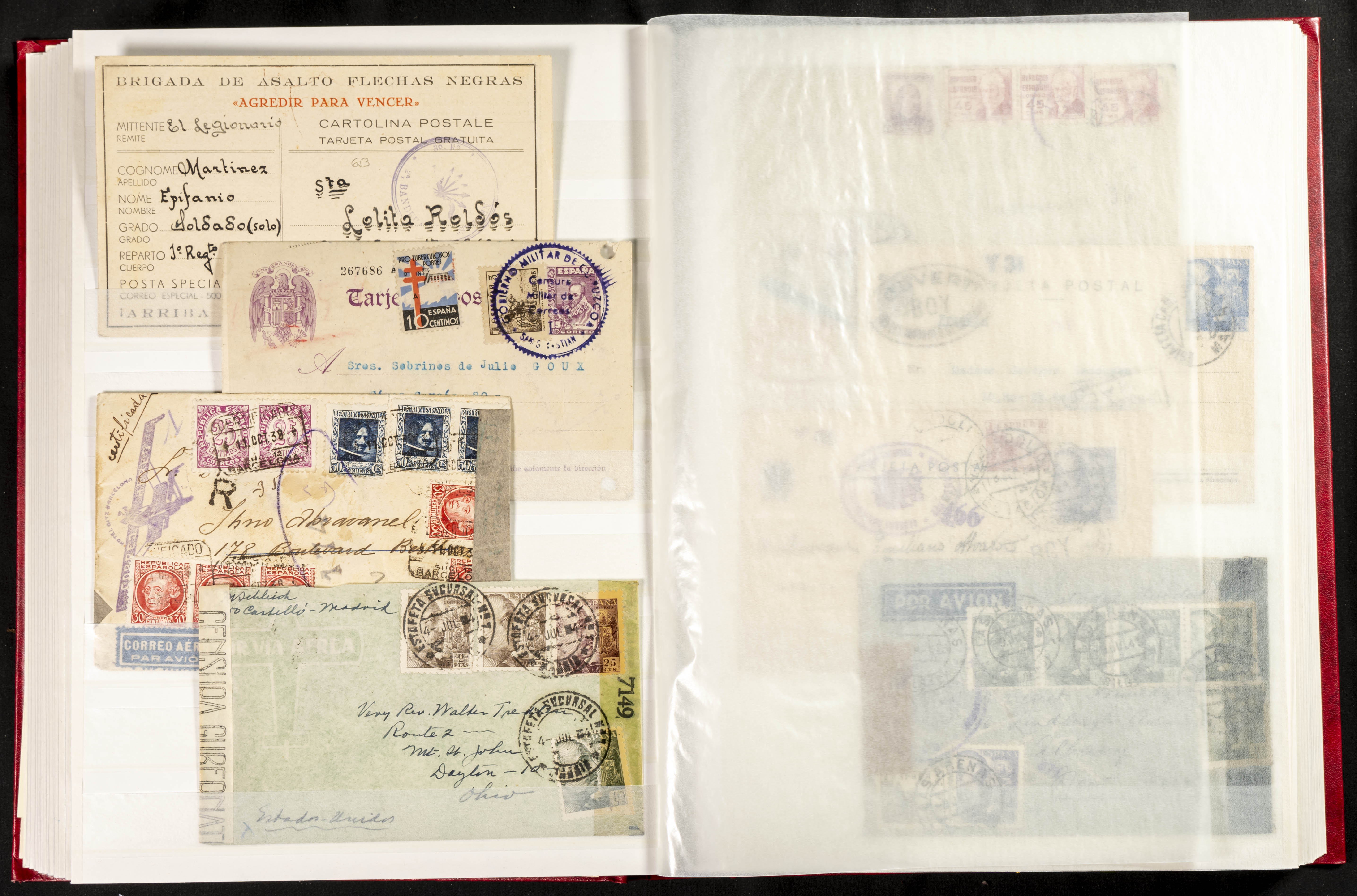 (1937ca). Espectacular colección sobre el Campo de Miranda de Ebro reunida por Estanislao Pan de Alfaro, estudiando numerosa correspondencia generada en este Campo y otros repartidos por España y Europa, incluye más de cuatrocientas cartas, tarjetas, entero postales, tarjetas entero postales, recibos, fotografías, etc, relacionadas con este campo y su periodo de funcionamiento que comienza durante la Guerra Civil y a partir de los años cuarenta sirve además como internado para extranjeros, conteniendo correspondencia de Legión Cóndor, Brigadas, Voluntarios Italianos y correspondencia extranjera, relacionada con campos de refugiados y de trabajadores extranjeros. IMPRESCINDIBLE EXAMINAR.