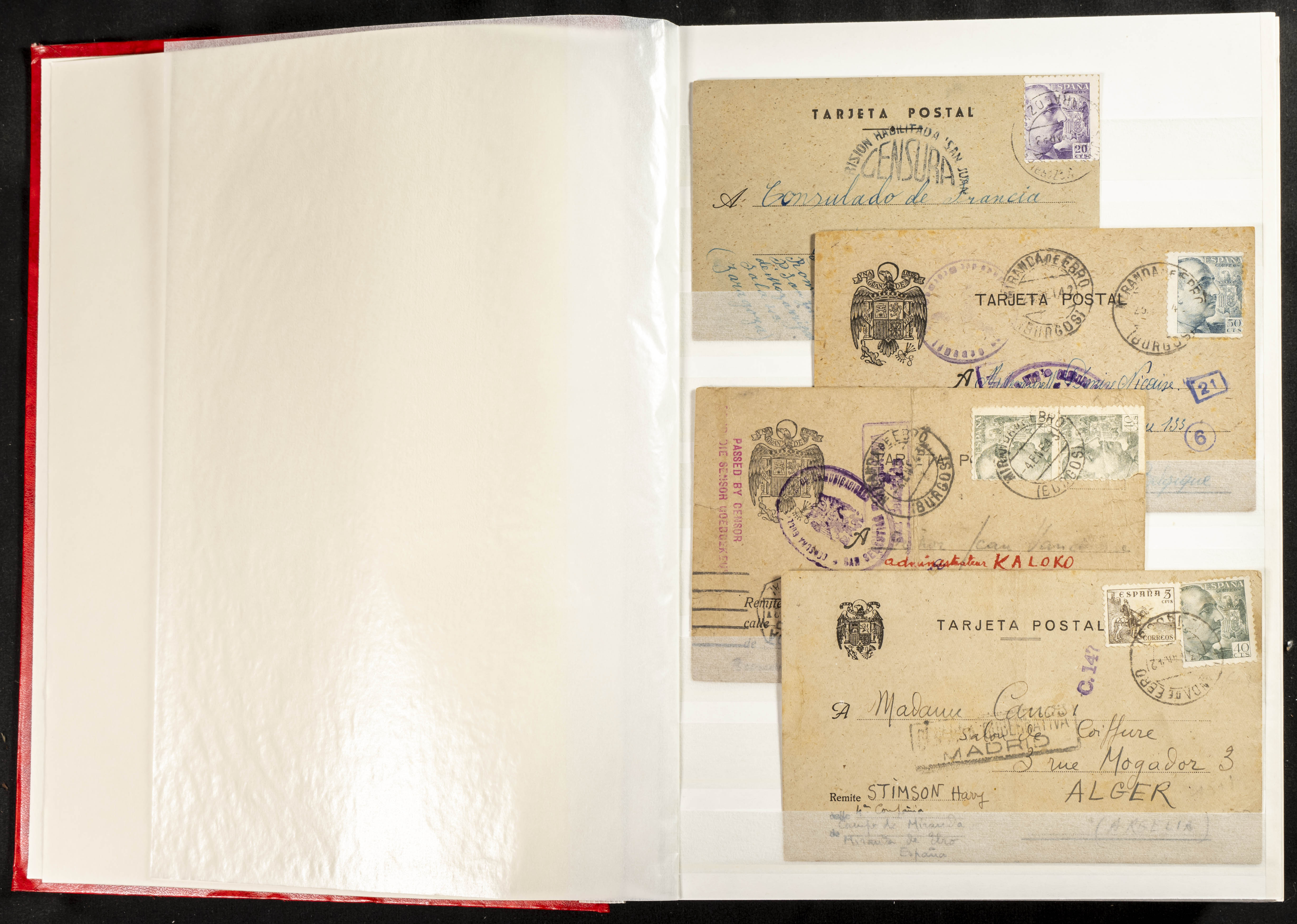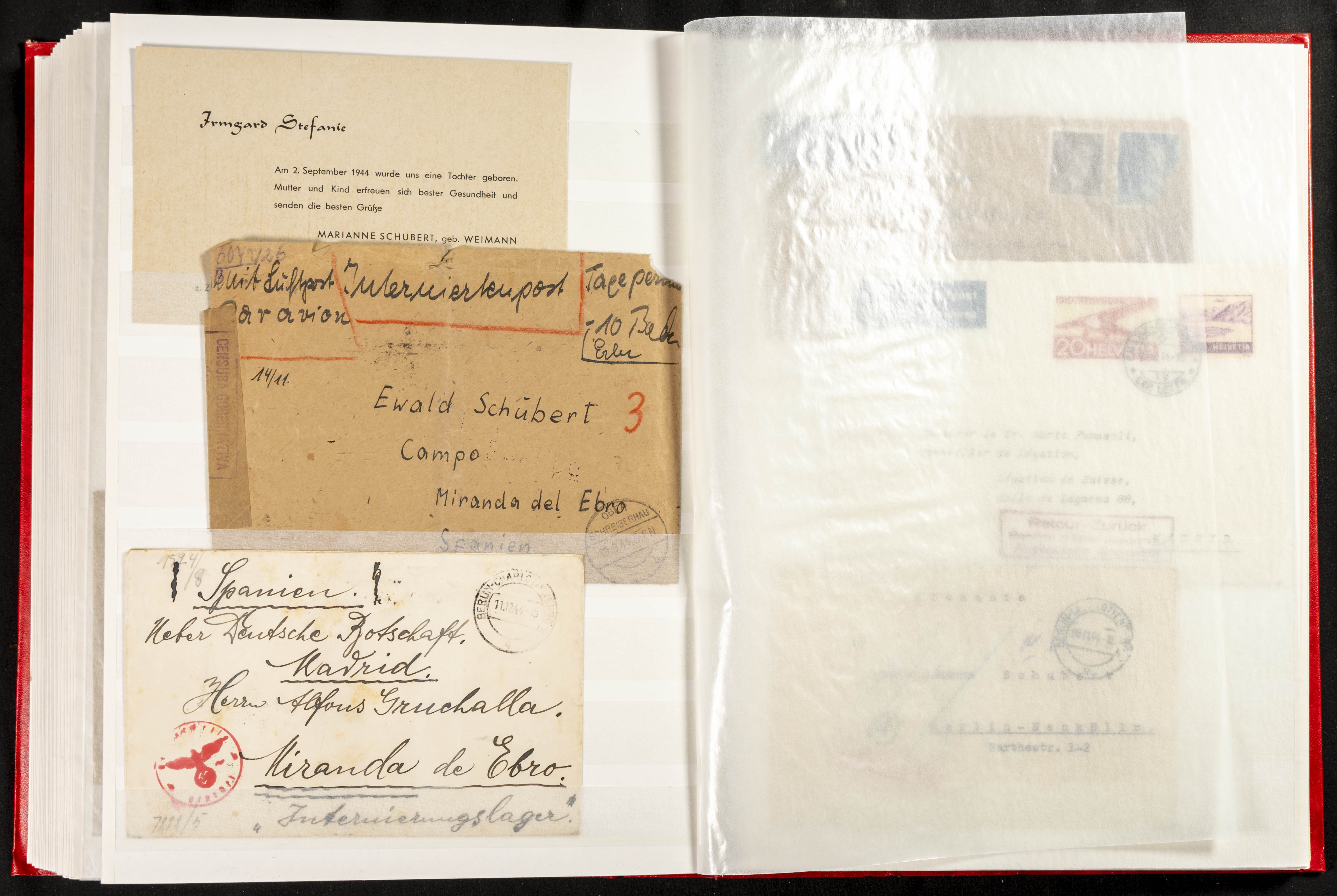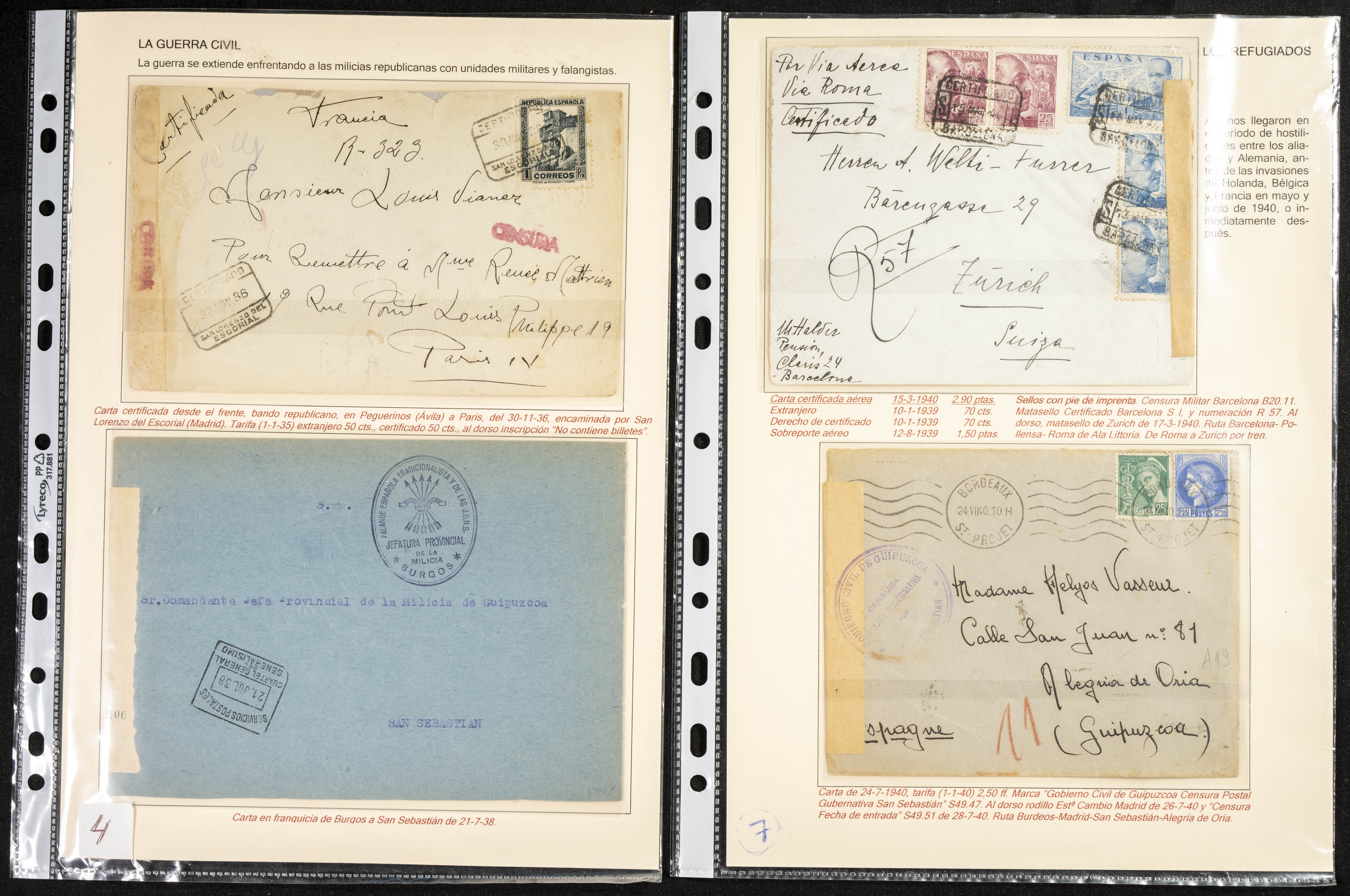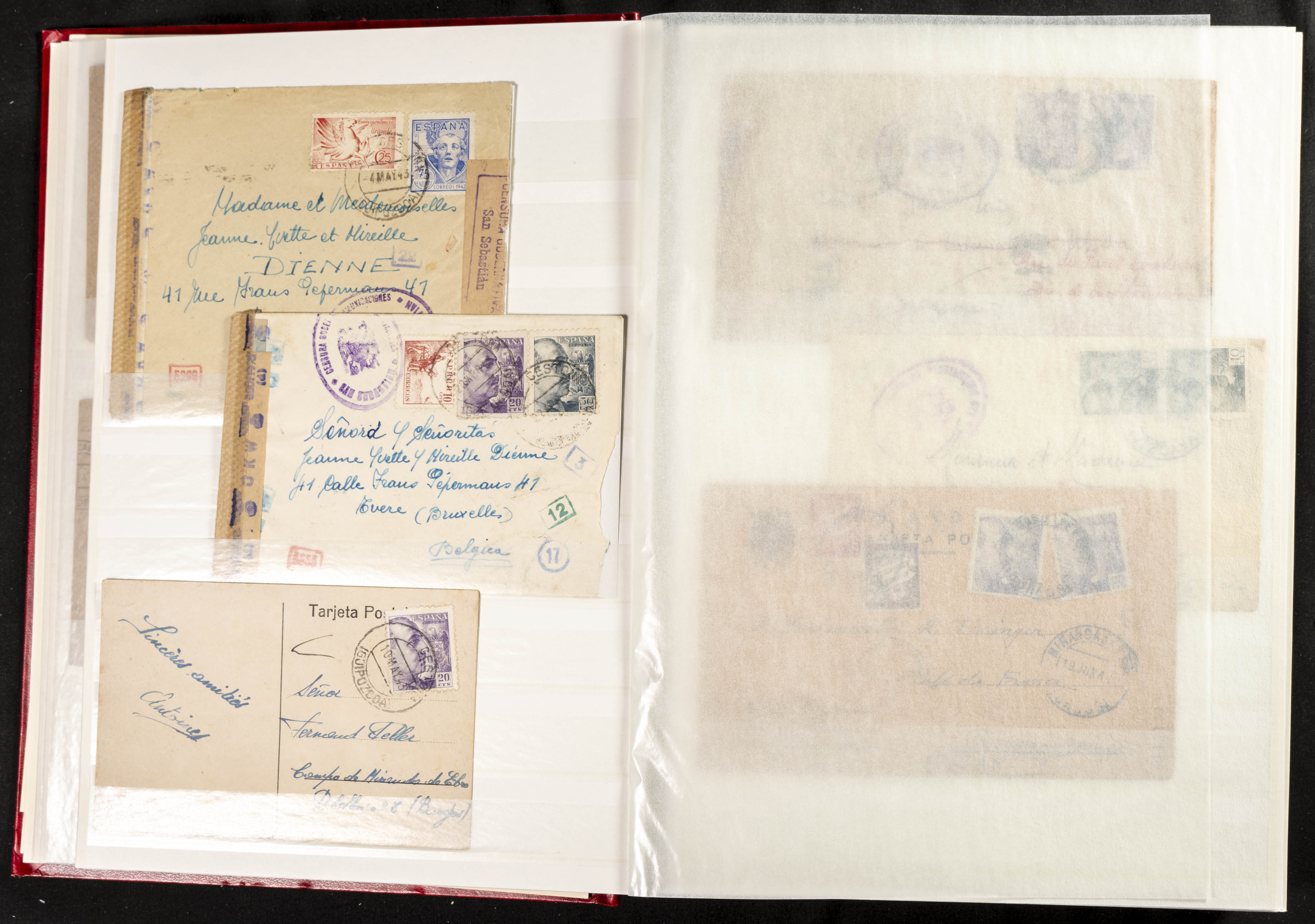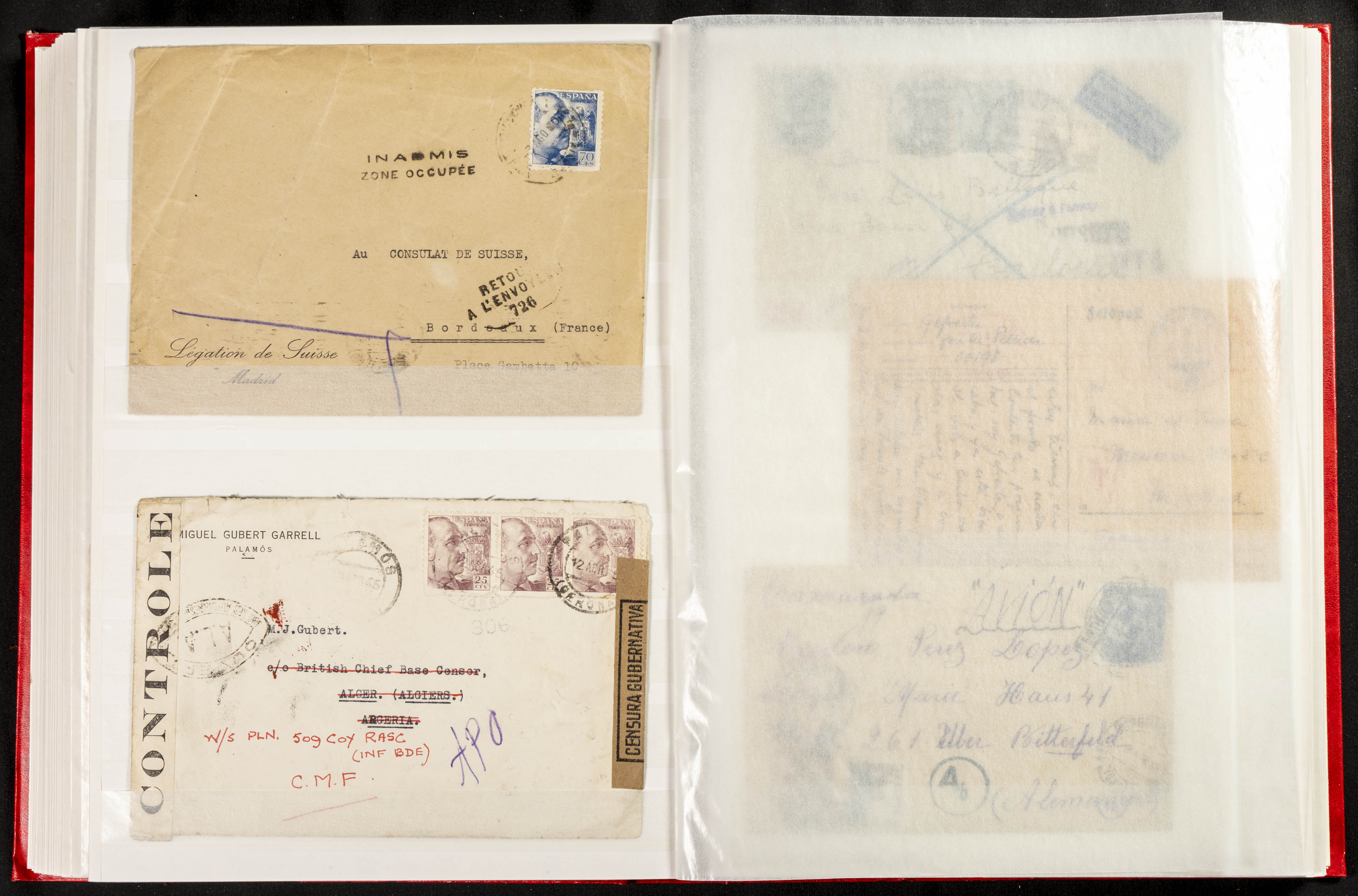 (1937ca). Espectacular colección sobre el Campo de Miranda de Ebro reunida por Estanislao Pan de Alfaro, estudiando numerosa correspondencia generada en este Campo y otros repartidos por España y Europa, incluye más de cuatrocientas cartas, tarjetas, entero postales, tarjetas entero postales, recibos, fotografías, etc, relacionadas con este campo y su periodo de funcionamiento que comienza durante la Guerra Civil y a partir de los años cuarenta sirve además como internado para extranjeros, conteniendo correspondencia de Legión Cóndor, Brigadas, Voluntarios Italianos y correspondencia extranjera, relacionada con campos de refugiados y de trabajadores extranjeros. IMPRESCINDIBLE EXAMINAR.