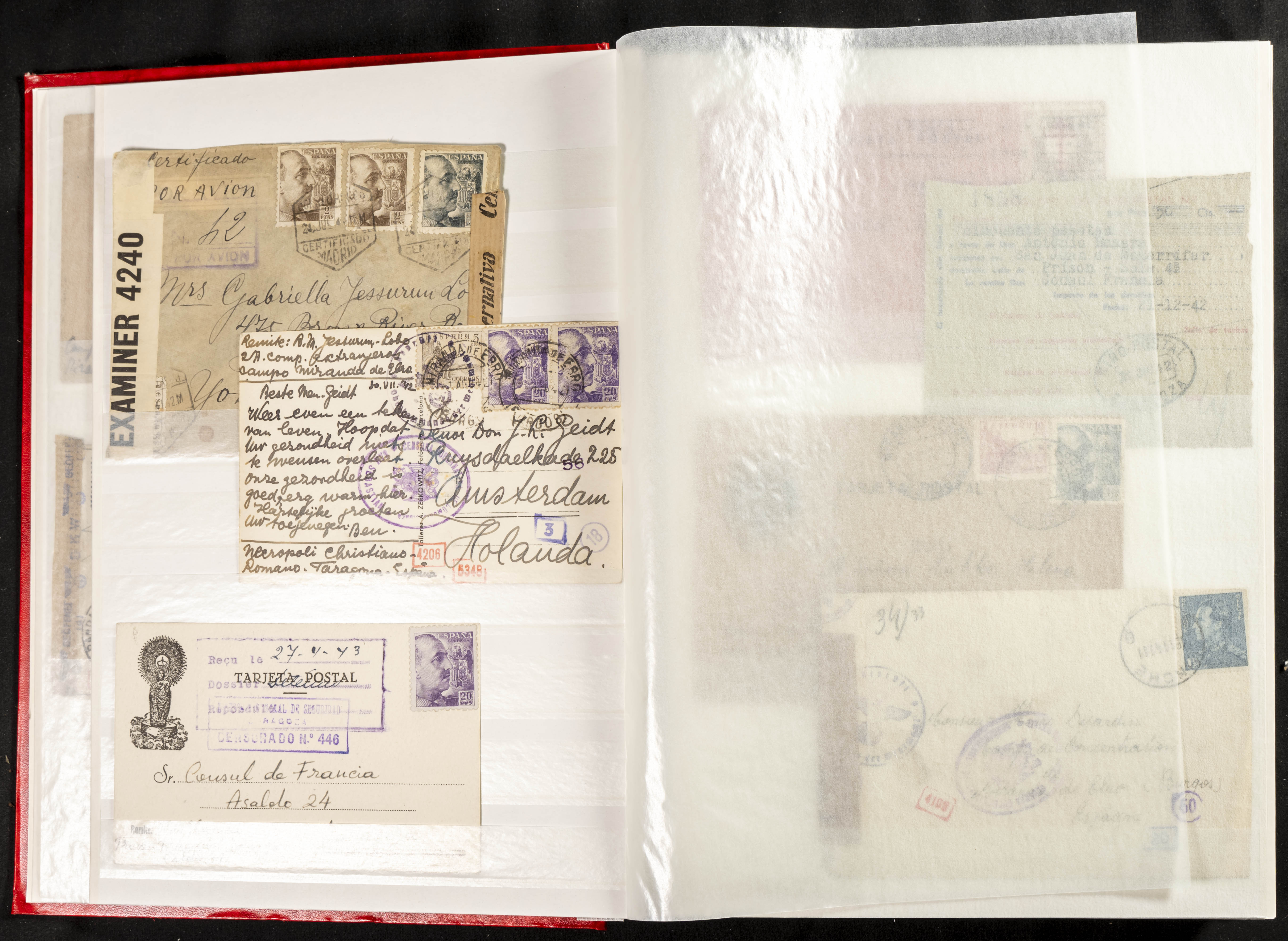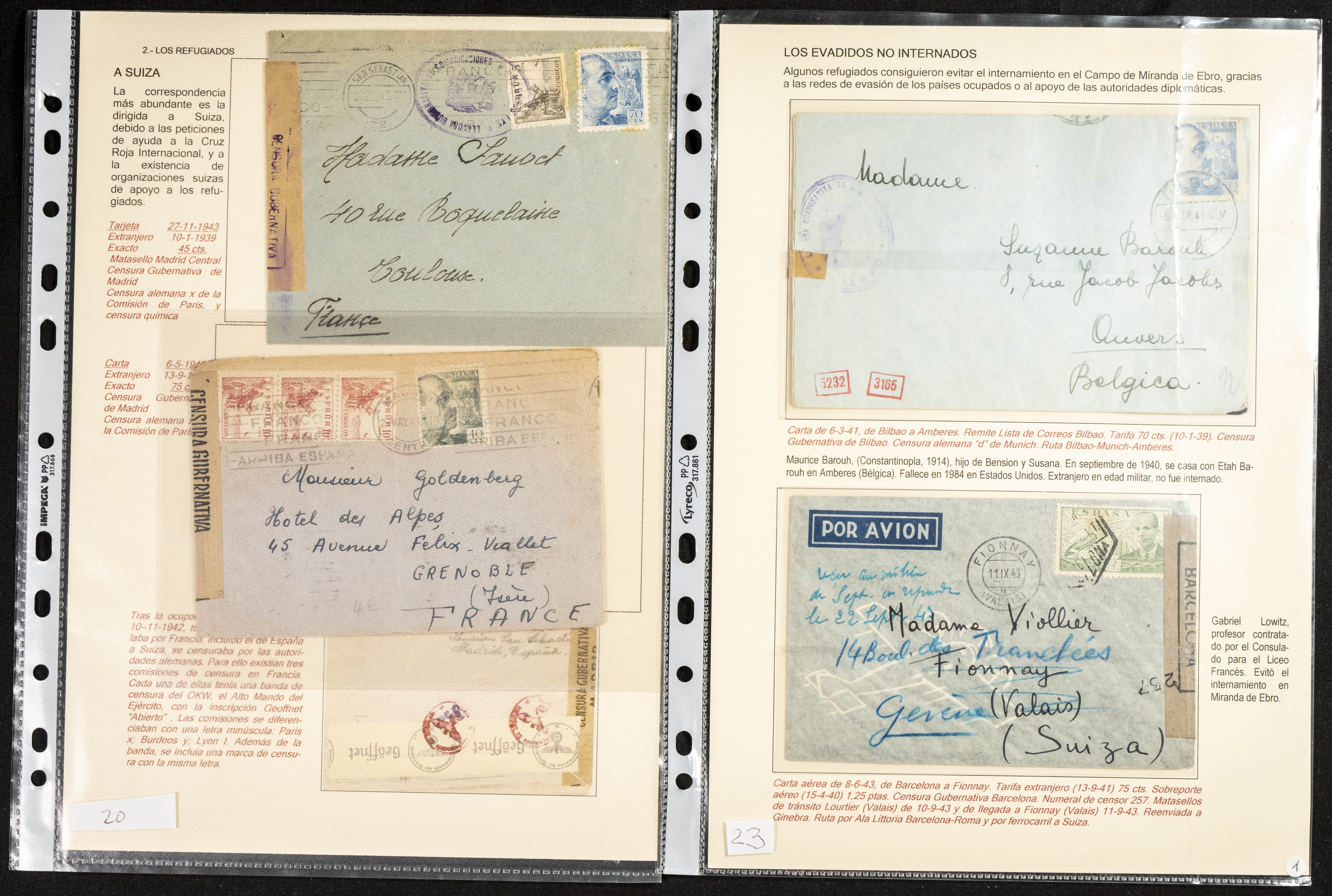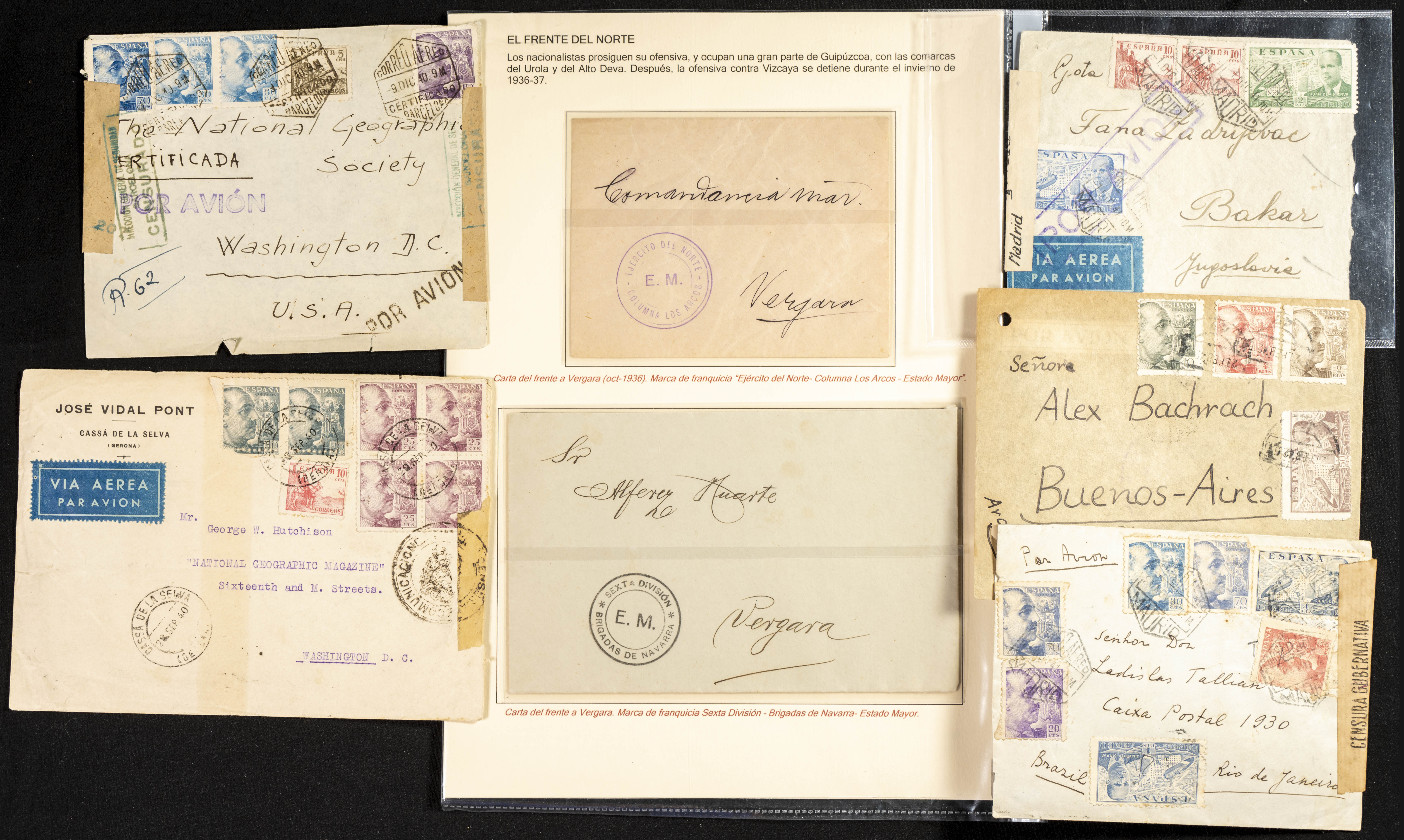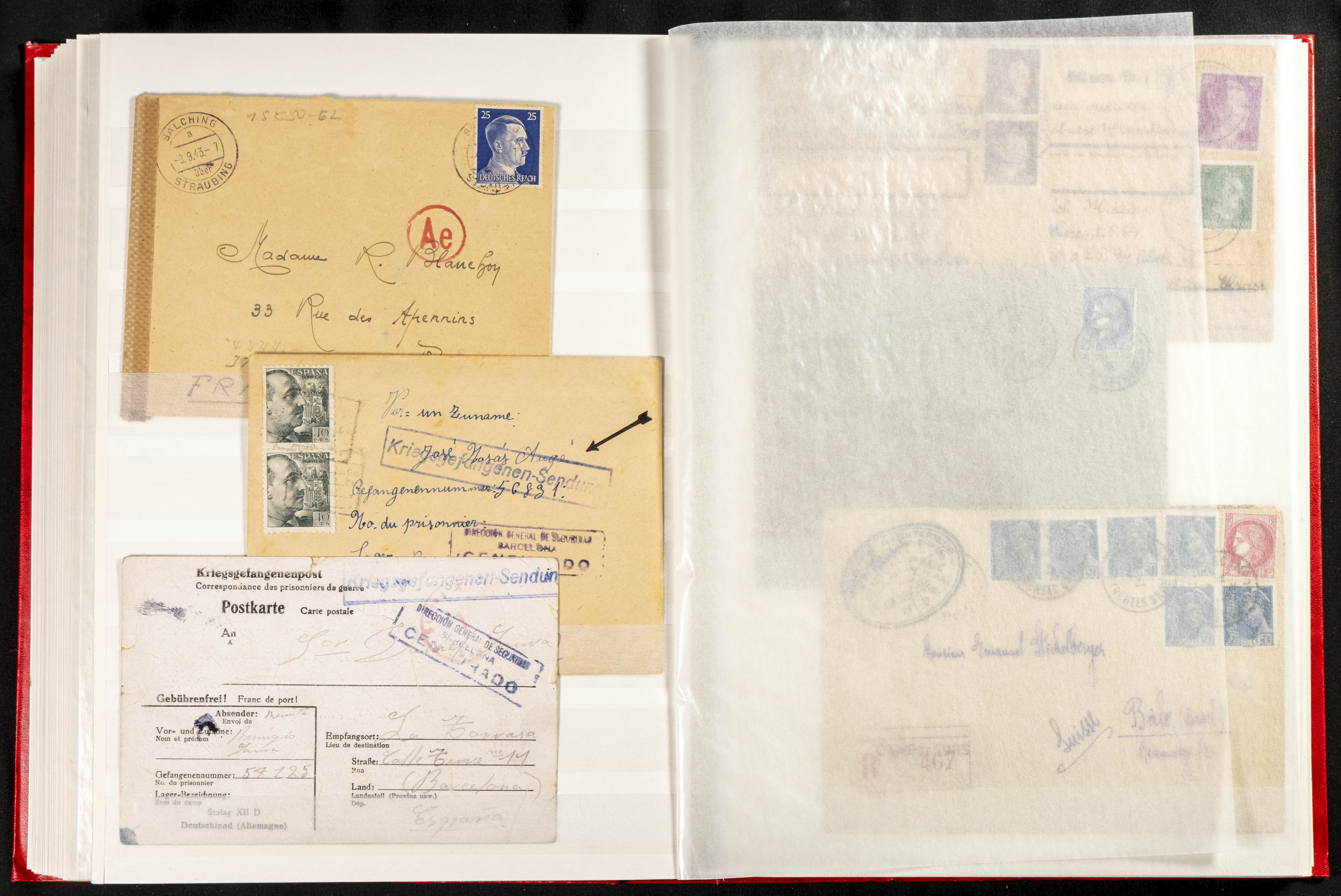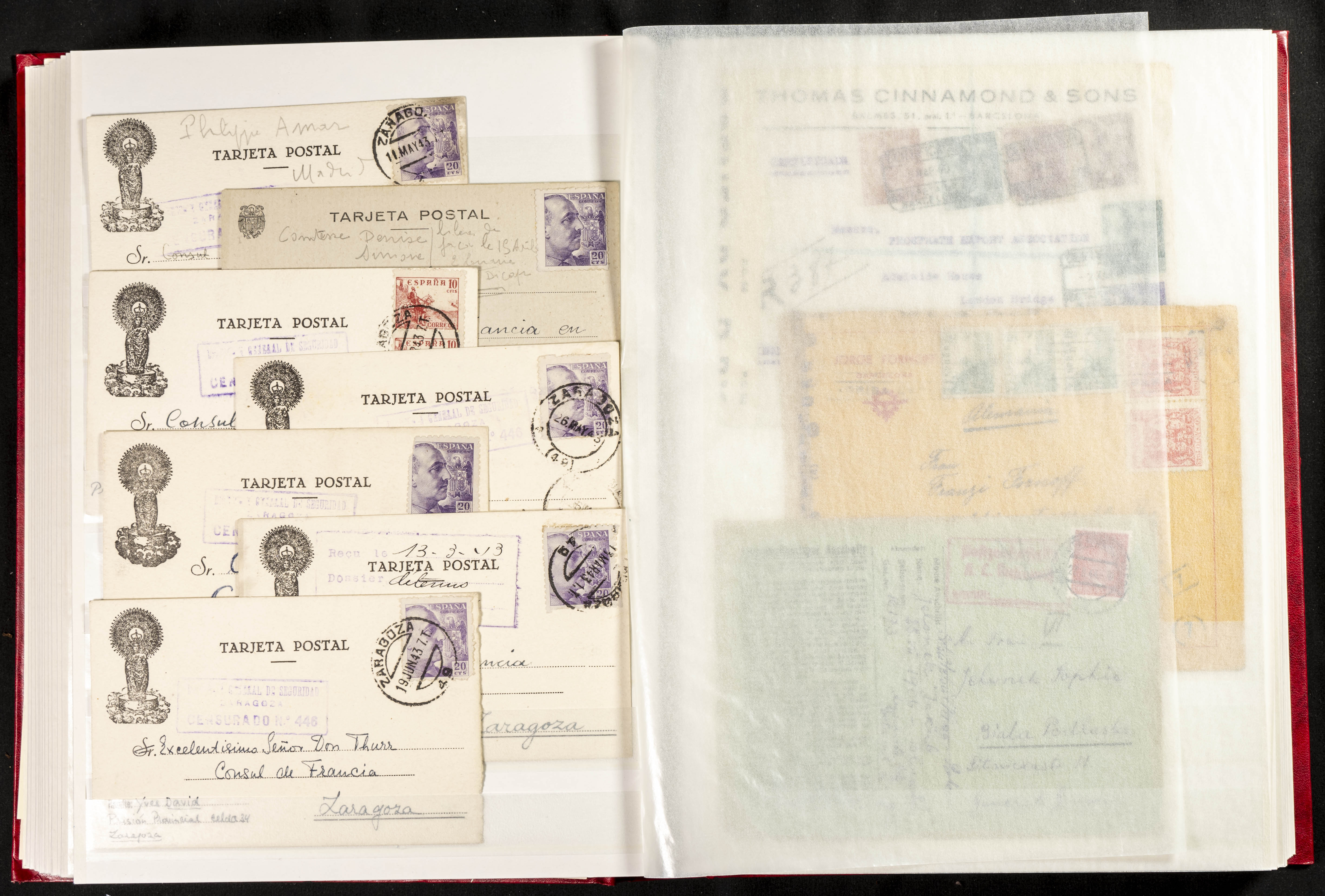 (1937ca). Espectacular colección sobre el Campo de Miranda de Ebro reunida por Estanislao Pan de Alfaro, estudiando numerosa correspondencia generada en este Campo y otros repartidos por España y Europa, incluye más de cuatrocientas cartas, tarjetas, entero postales, tarjetas entero postales, recibos, fotografías, etc, relacionadas con este campo y su periodo de funcionamiento que comienza durante la Guerra Civil y a partir de los años cuarenta sirve además como internado para extranjeros, conteniendo correspondencia de Legión Cóndor, Brigadas, Voluntarios Italianos y correspondencia extranjera, relacionada con campos de refugiados y de trabajadores extranjeros. IMPRESCINDIBLE EXAMINAR.