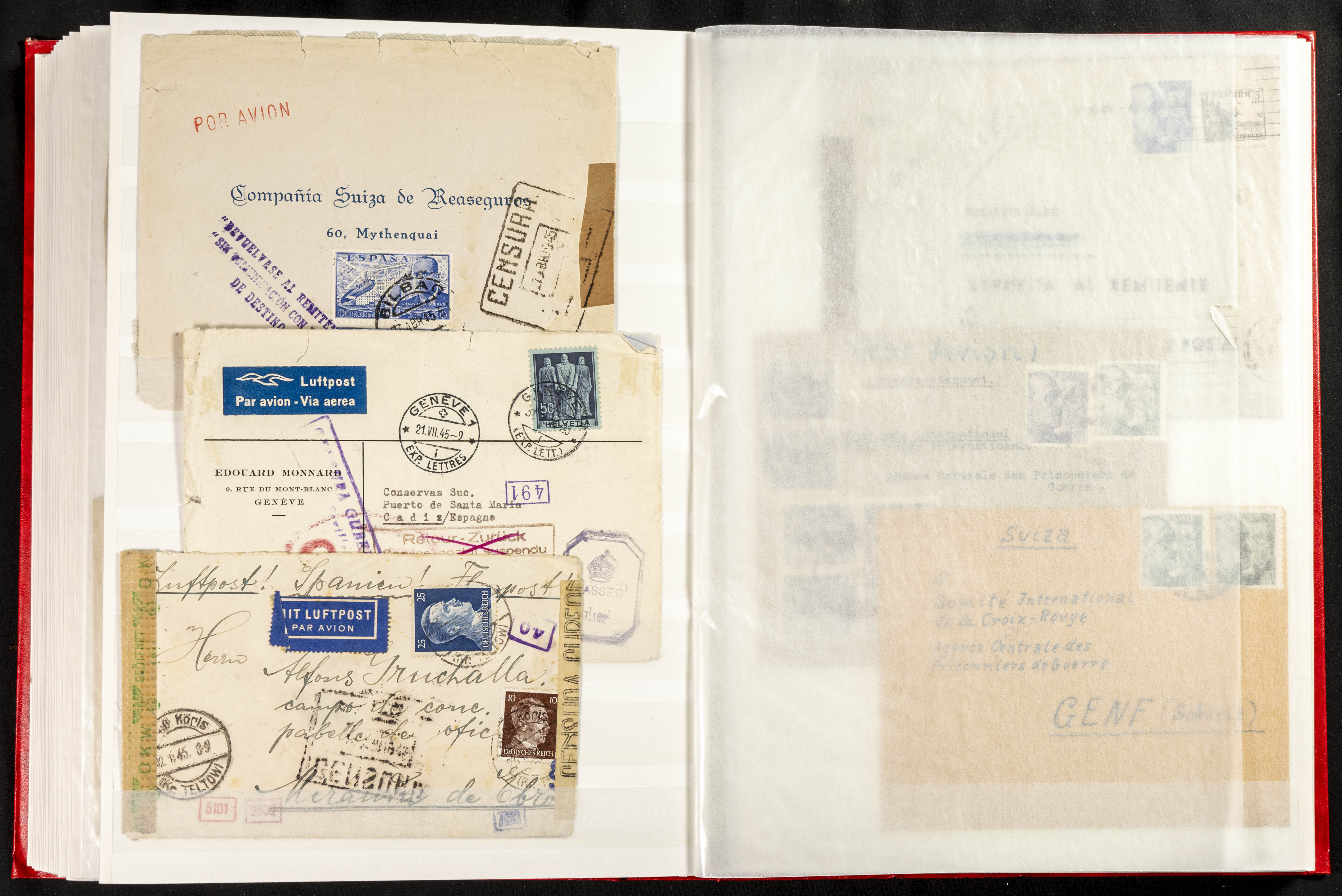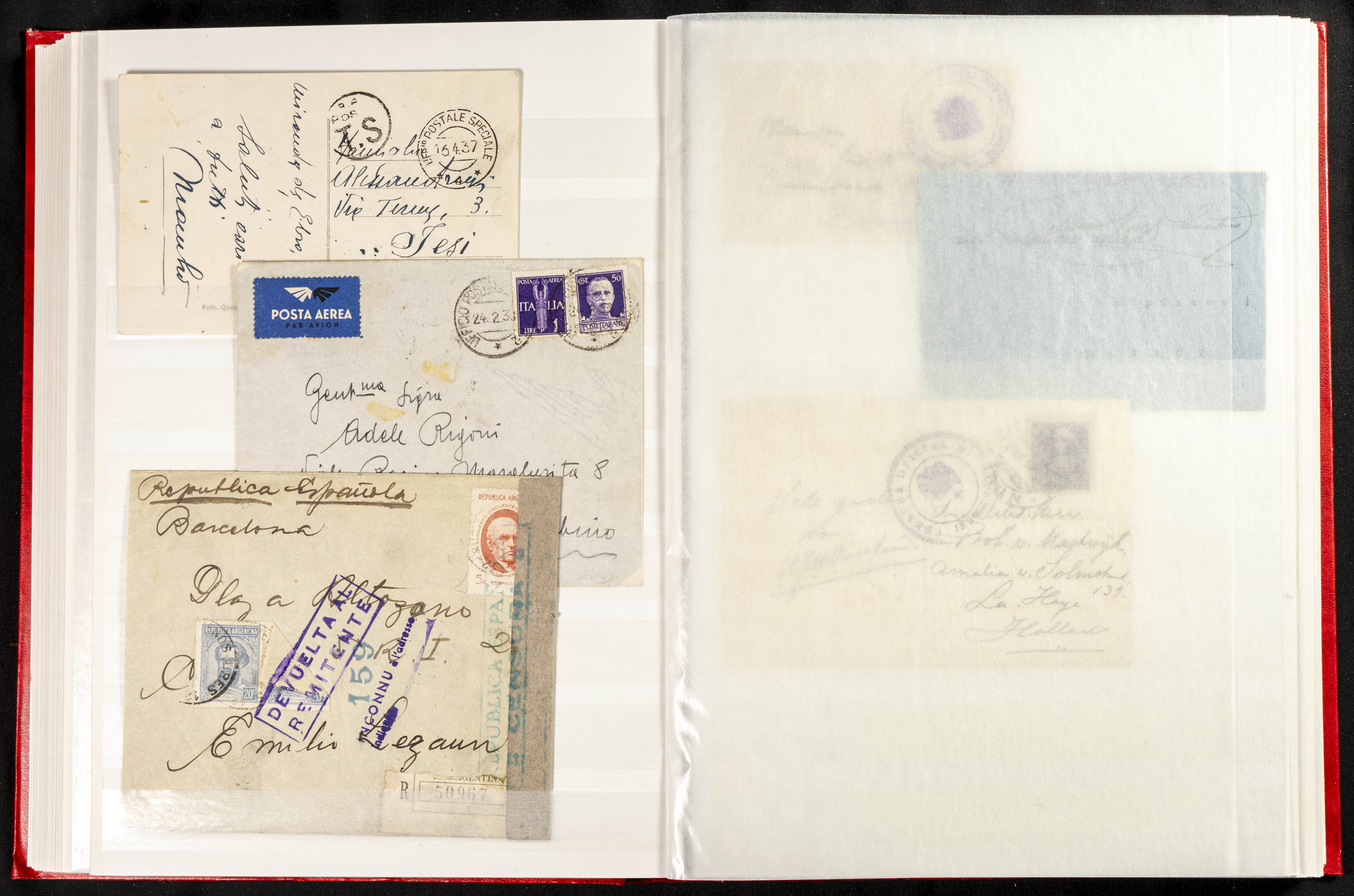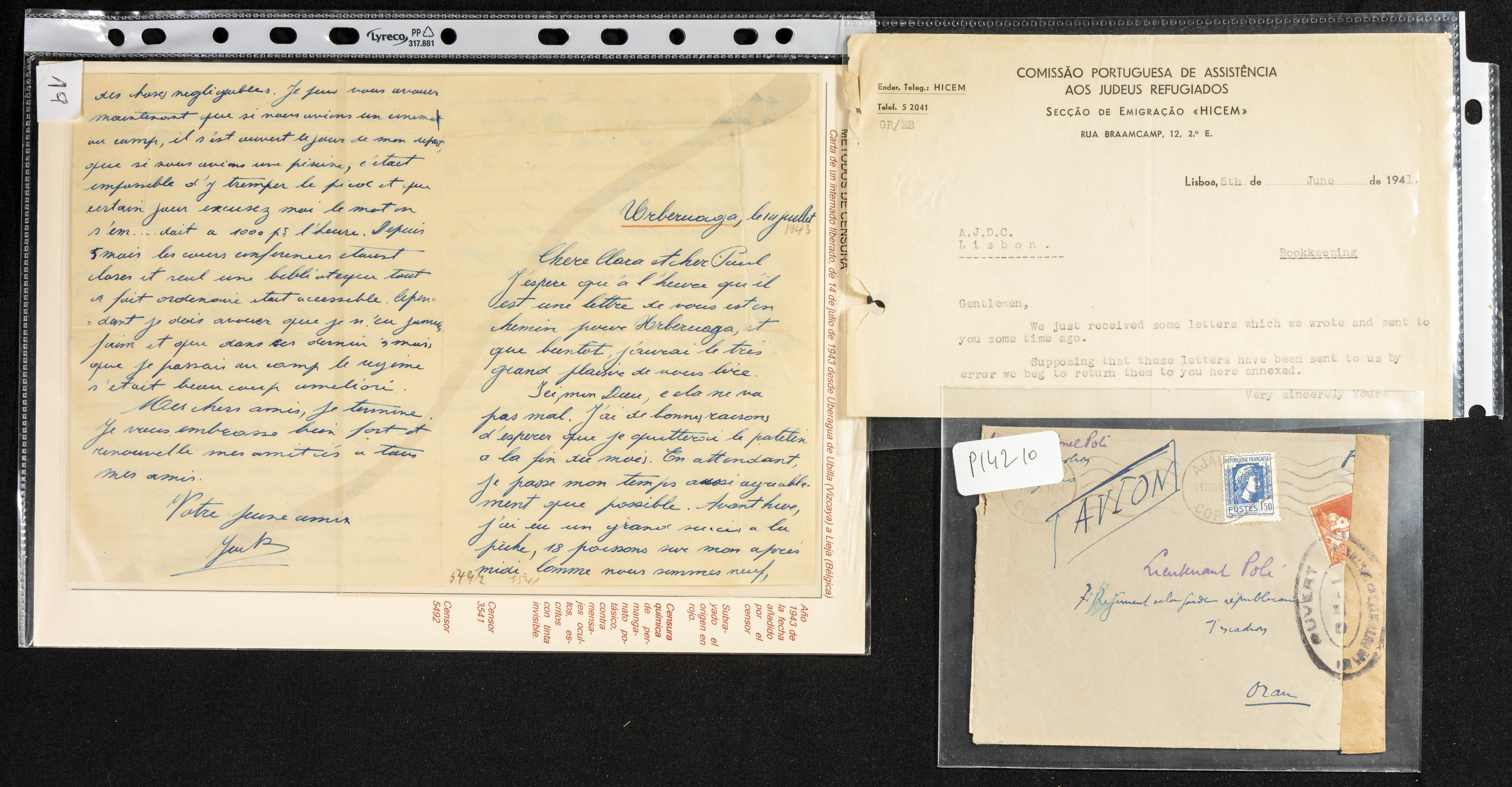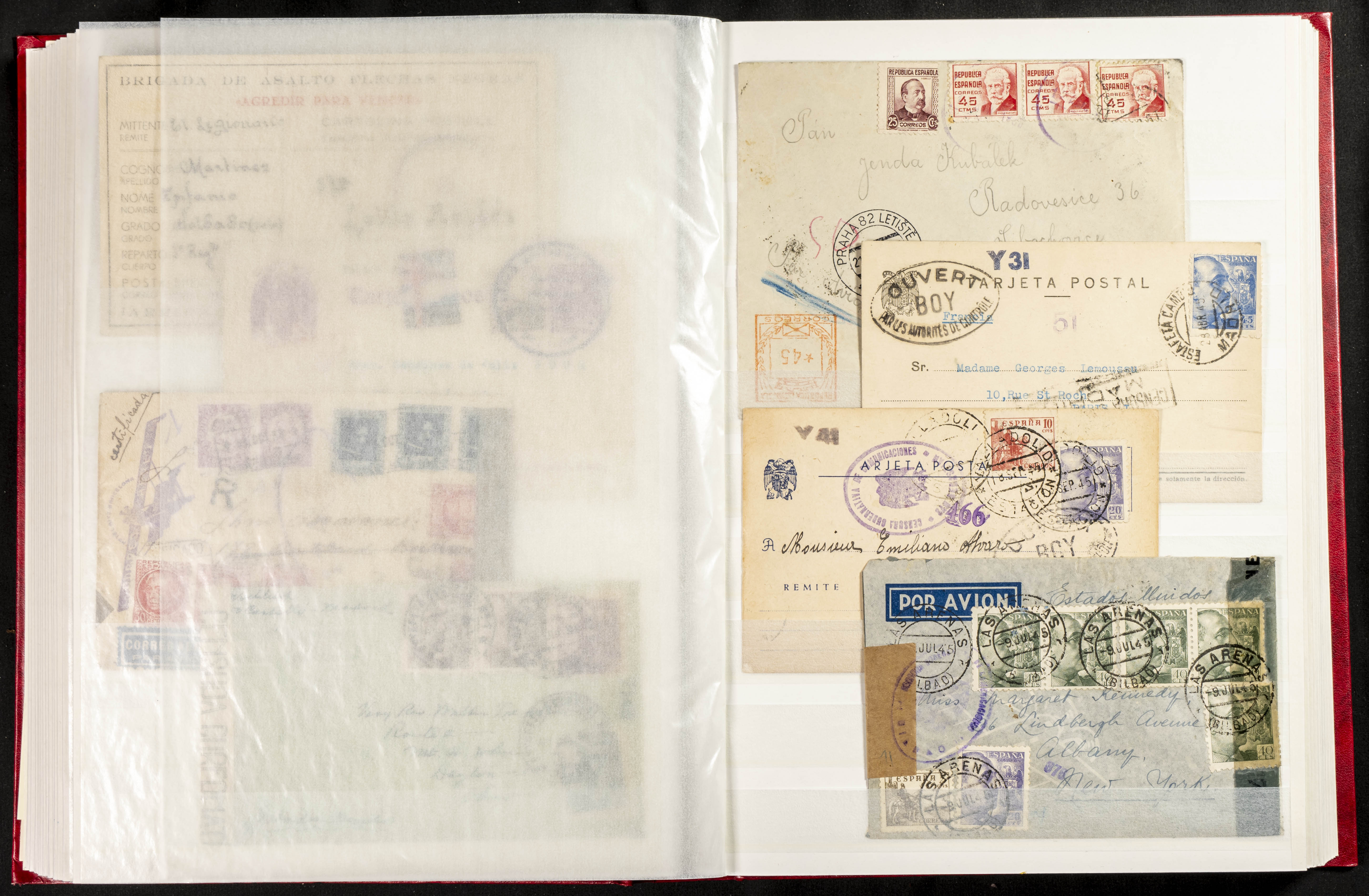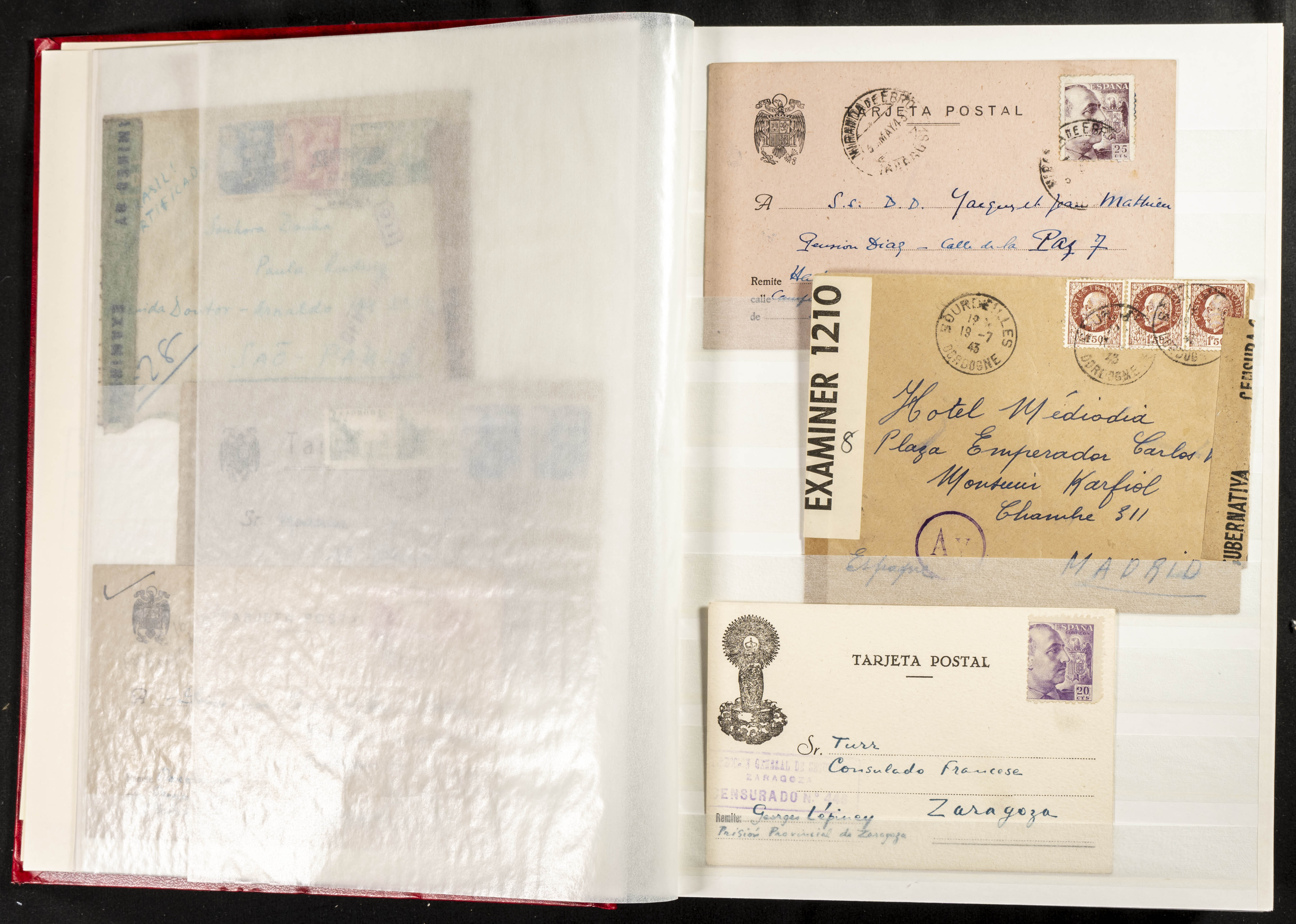 (1937ca). Espectacular colección sobre el Campo de Miranda de Ebro reunida por Estanislao Pan de Alfaro, estudiando numerosa correspondencia generada en este Campo y otros repartidos por España y Europa, incluye más de cuatrocientas cartas, tarjetas, entero postales, tarjetas entero postales, recibos, fotografías, etc, relacionadas con este campo y su periodo de funcionamiento que comienza durante la Guerra Civil y a partir de los años cuarenta sirve además como internado para extranjeros, conteniendo correspondencia de Legión Cóndor, Brigadas, Voluntarios Italianos y correspondencia extranjera, relacionada con campos de refugiados y de trabajadores extranjeros. IMPRESCINDIBLE EXAMINAR.
