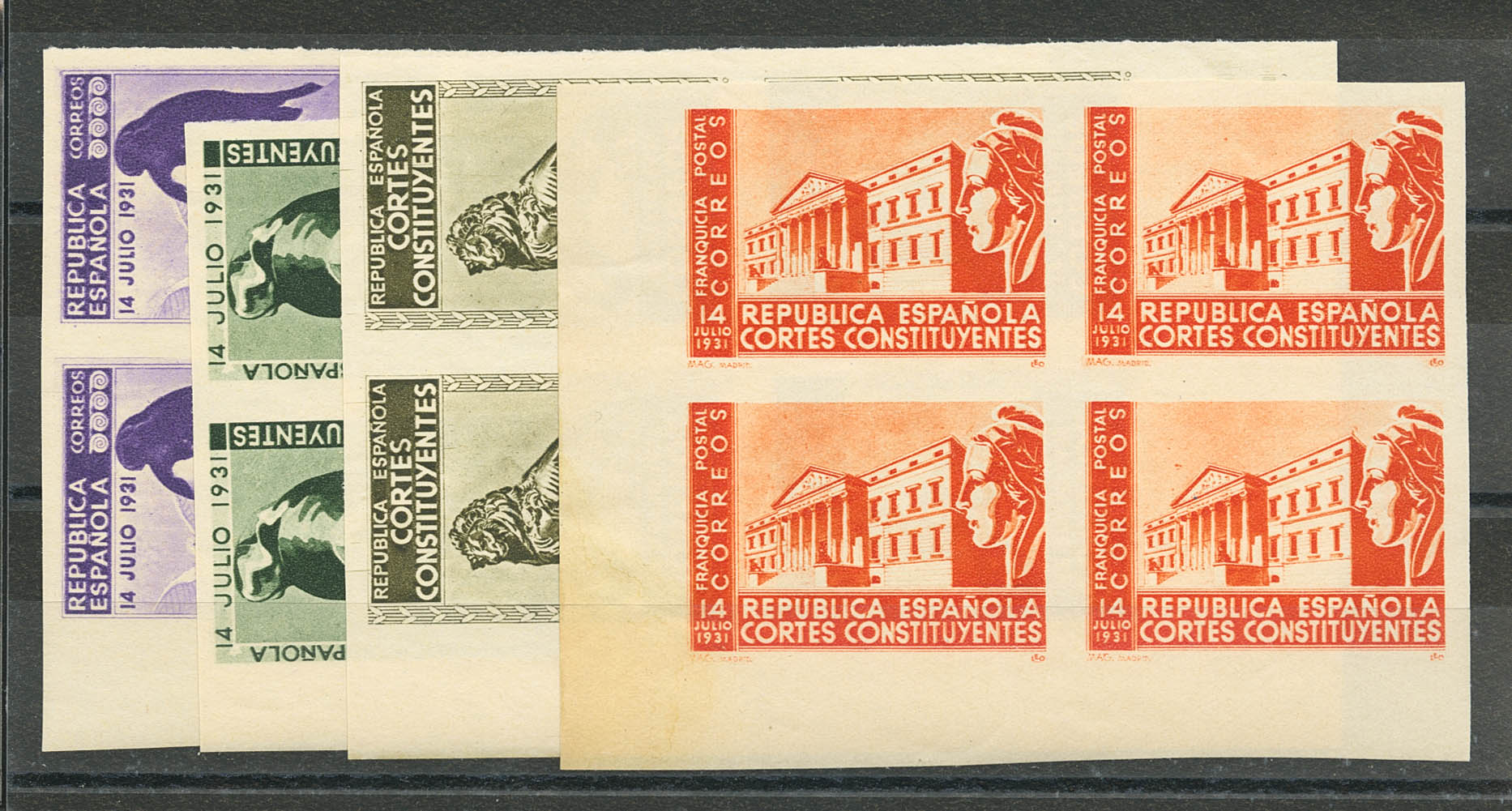 ★★ 19/22s(4). 1931. Serie completa, bloque de cuatro. SIN DENTAR. MAGNIFICA. Edifil 2017: 64 Euros
