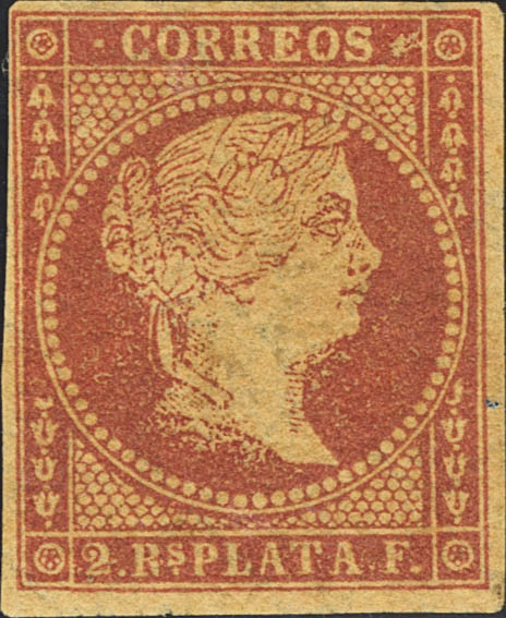 (★) 6. 1856. 2 reales rojo naranja. MAGNIFICO Y RARO EN NUEVO. Cert. ECHENAGUSIA. Edifil 2025: 450 Euros