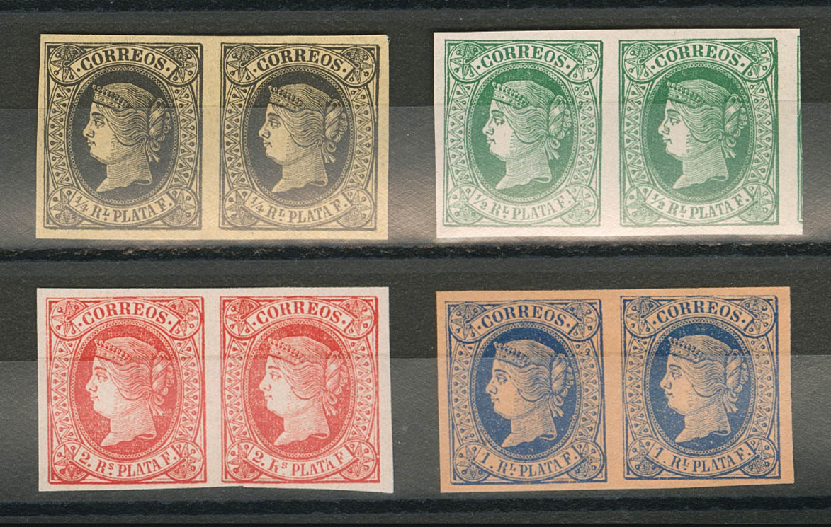 (★) 12(2), Ant.10/12(2). 1864. Serie completa, en parejas (cuatro valores). Colores muy intensos. MAGNIFICA. Edifil 2019: +140 Euros