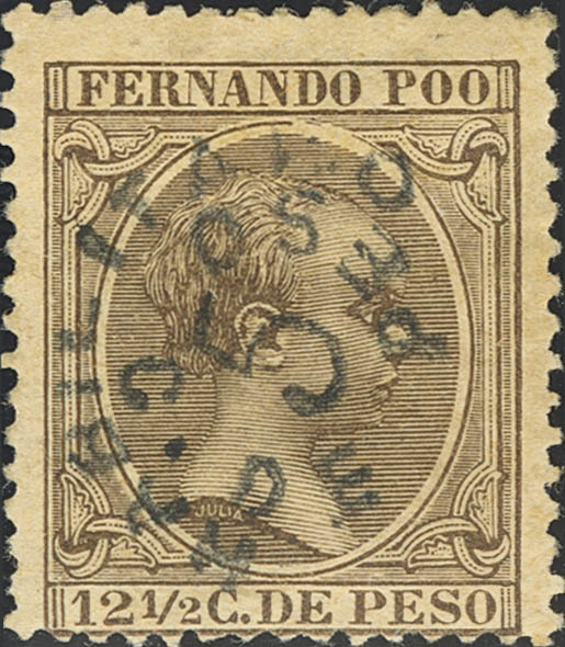 ★ 37. 1896. 5 cts sobre 12½ cts castaño. MAGNIFICO. Edifil 2025: 54 Euros