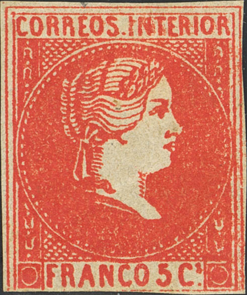 ★ 9. 1861. 5 cuartos bermellón (márgenes justos). MAGNIFICO. Edifil 2024: 85 Euros