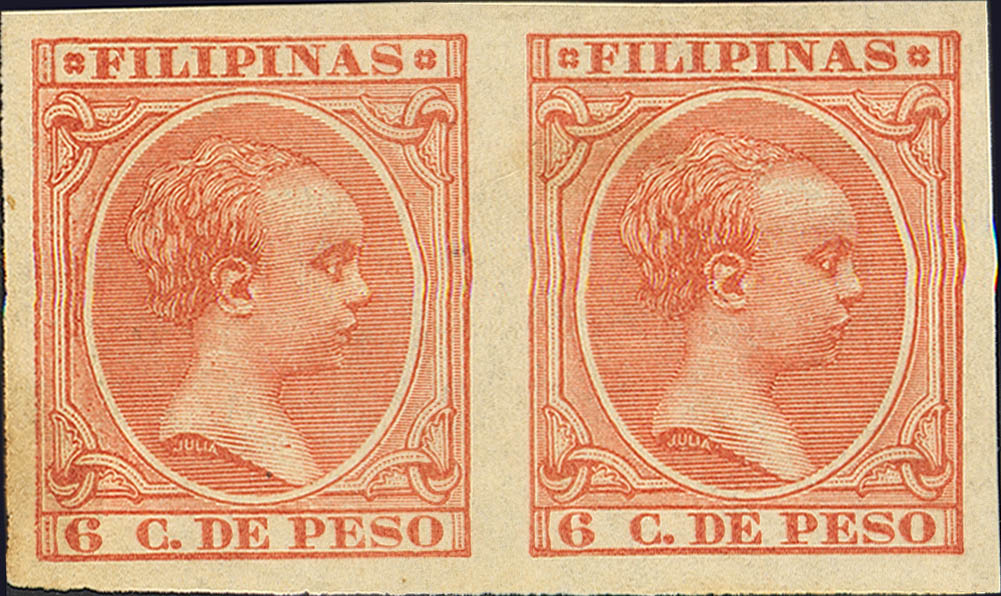 ★ 112s(2). 1894. 6 ctvos naranja, pareja. SIN DENTAR. MAGNIFICA Y RARISIMA. Ex-Antonio Cuesta. Edifil 2025: 950 Euros