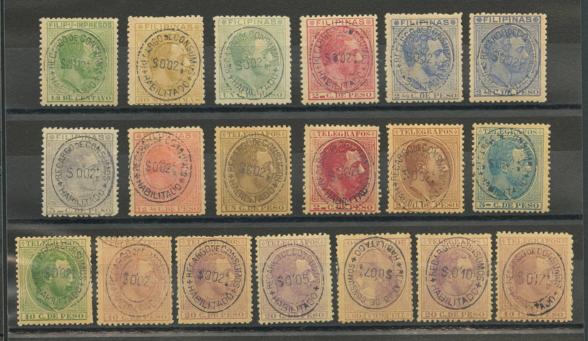 ★1889. Serie completa. RECARGO DE CONSUMOS. MAGNIFICA Y RARA. (Gálvez 1/19)