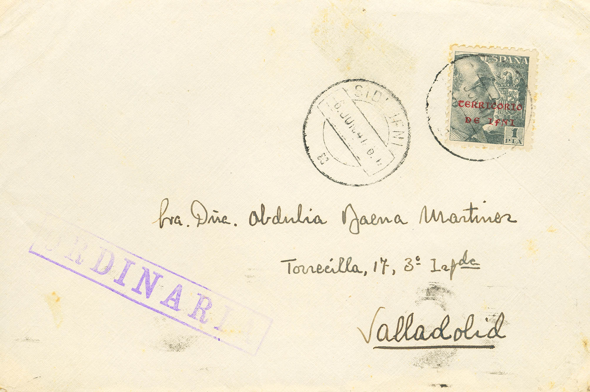 12. 1947. 1 pts pizarra. SIDI IFNI a VALLADOLID. Al dorso llegada. MAGNIFICA Y RARA.