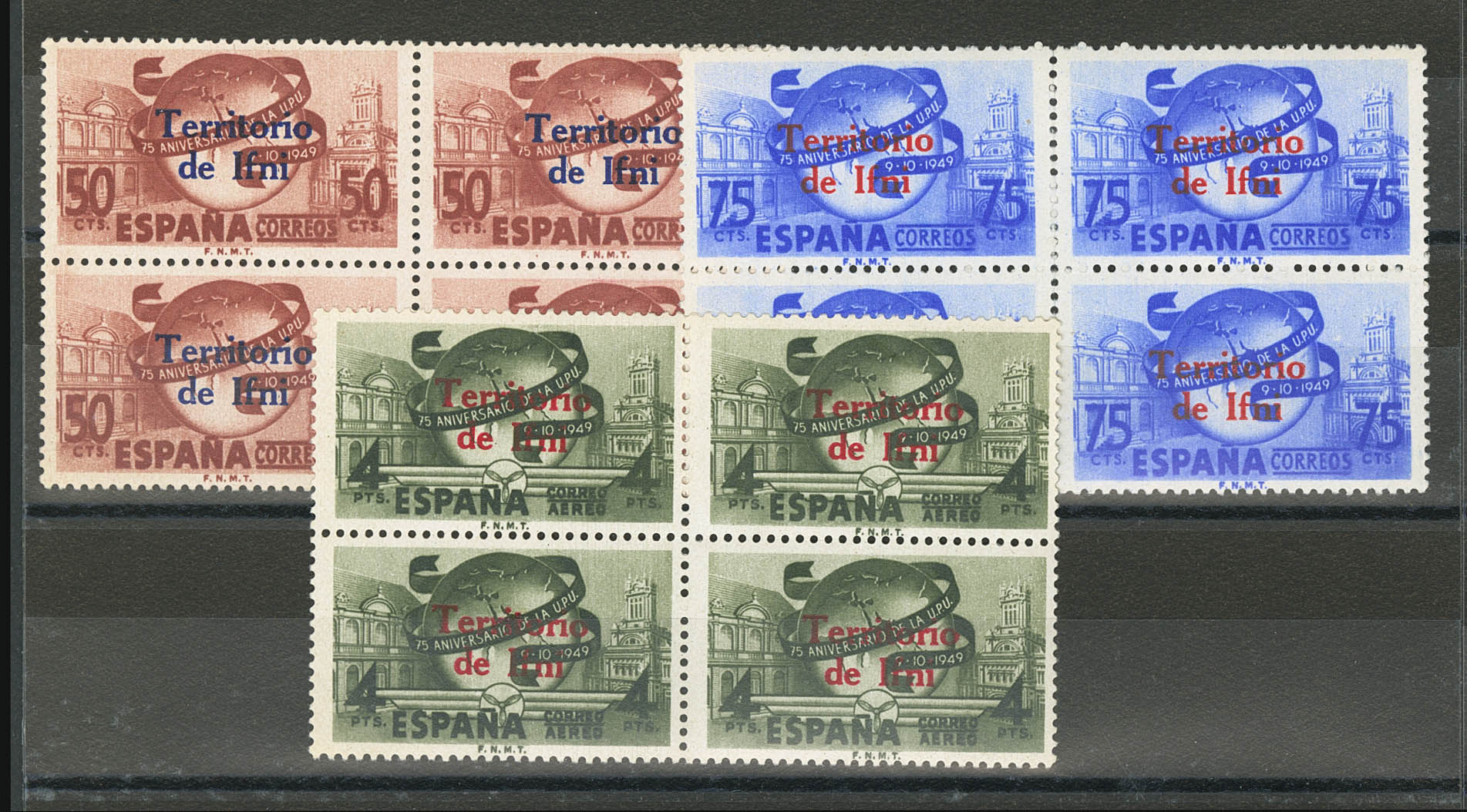 ★★ 65/67(4). 1949. Serie completa, bloque de cuatro. MAGNIFICA. Edifil 2025: +84 Euros