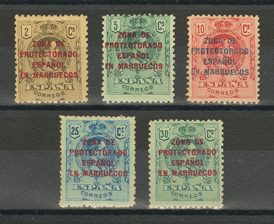 ★ 58/60N, 62/63N. 1916. Serie completa, a falta del 15 cts amarillo (cinco valores). NºA000000. MAGNIFICA. Edifil 2018: 154 Euros