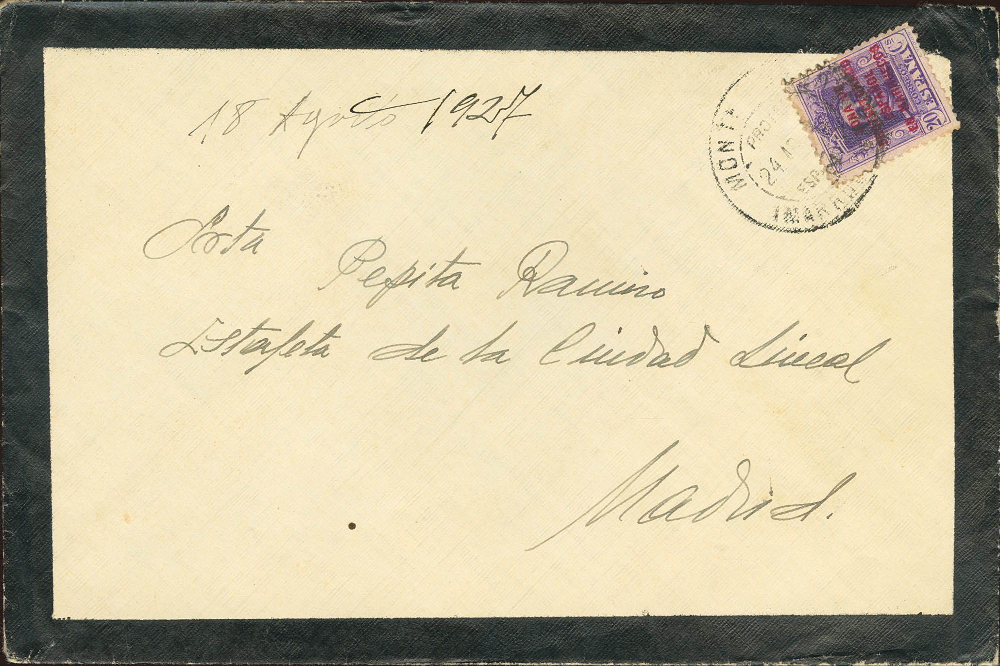 85. 1927. 20 cts violeta. MONTE ARRUIT a MADRID. Matasello MONTE ARRUIT / (MARRUECOS). MAGNIFICA E INUSUAL.