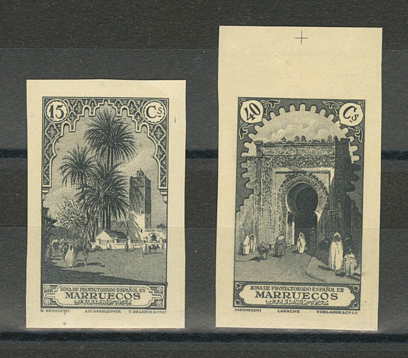(★) 109P, 113P. 1928. 15 cts negro y 40 cts negro. ENSAYOS DE PLANCHA. MAGNIFICOS Y MUY RAROS.