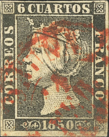 1. 1850. 6 cuartos negro. Matasello baeza CORUÑA / GALICIA. BONITO.