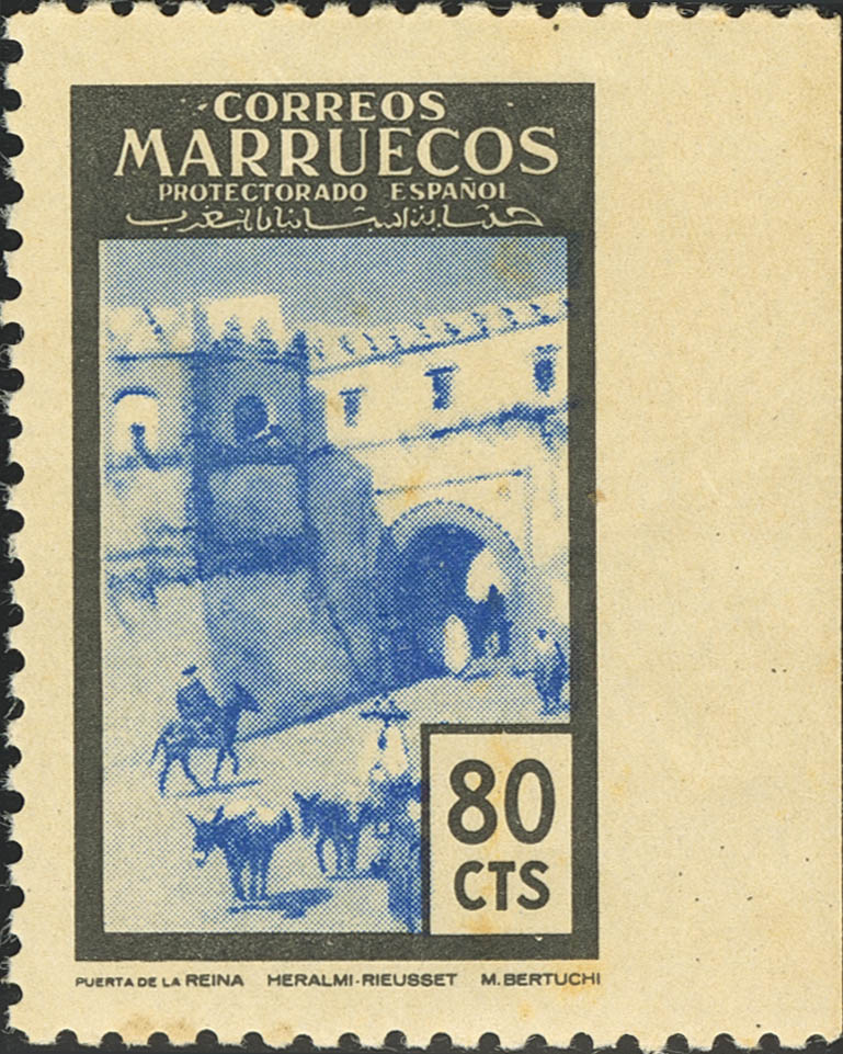 ★★ 402smd. 1955. 80 cts ultramar y negro. SIN DENTAR EL MARGEN DERECHO. MAGNIFICO Y RARO. Edifil 2018: +100 Euros