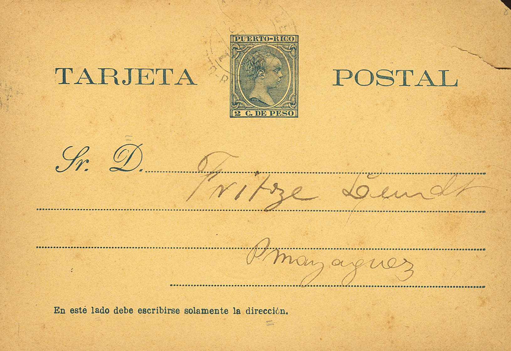 5. 1894. 2 ctvos azul sobre Tarjeta Entero Postal. SAN JUAN a MAYAGÜEZ. Al dorso llegada. BONITA Y RARA.