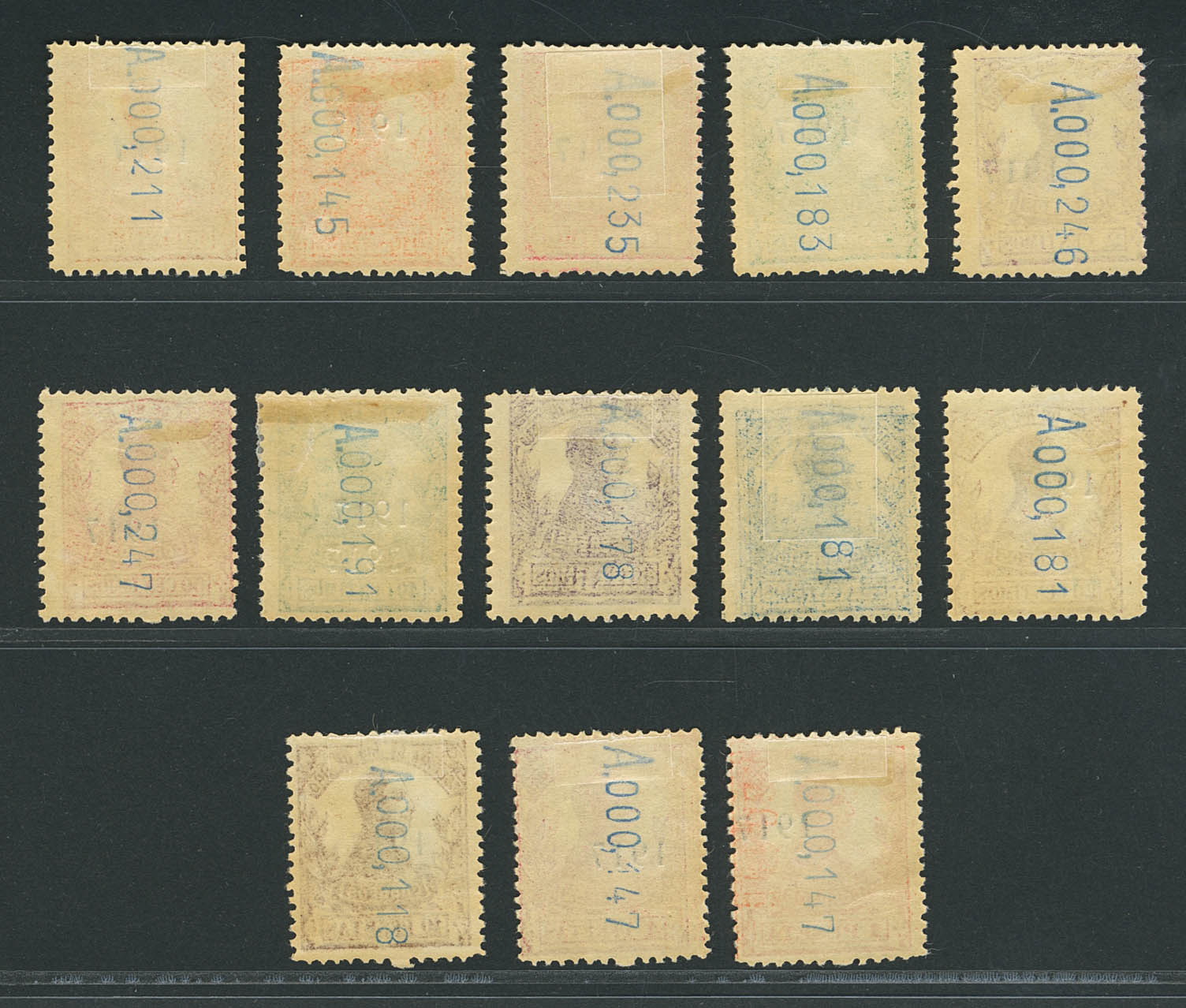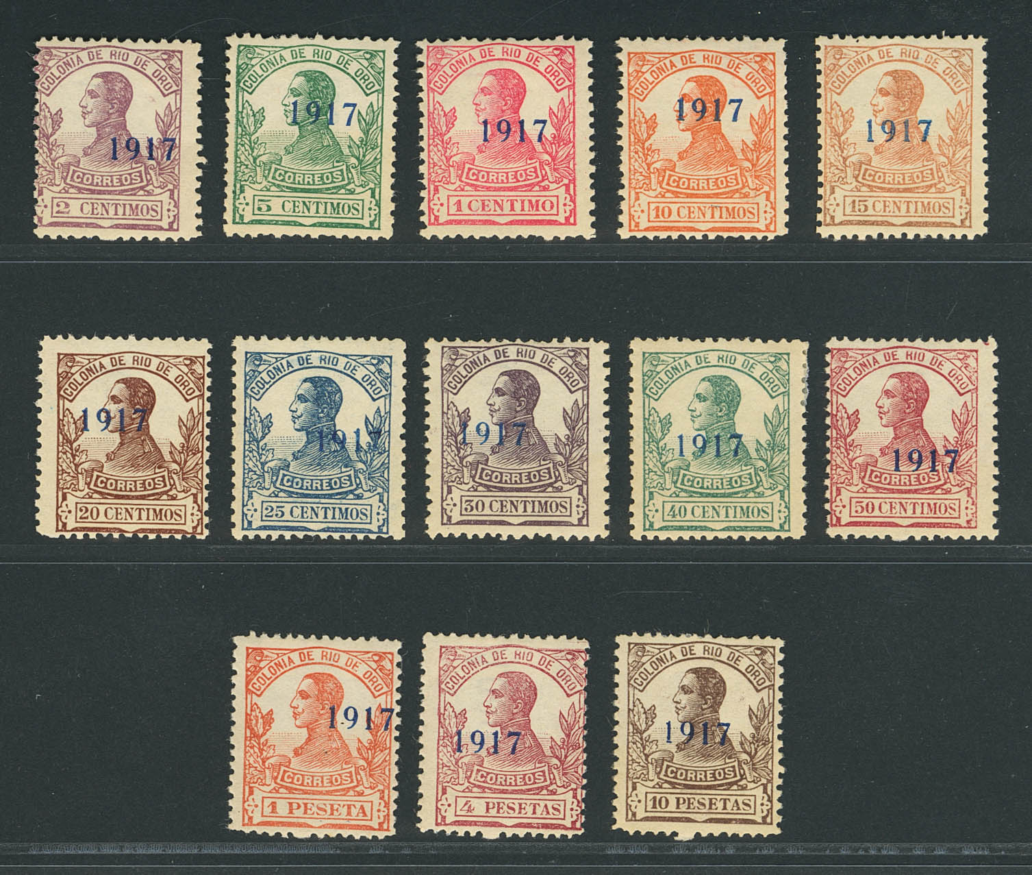 ★ 91/03hcc. 1917. Serie completa. CAMBIO DE COLOR DE LA SOBRECARGA, en azul. MAGNIFICA Y RARA. Edifil 2018: 335 Euros