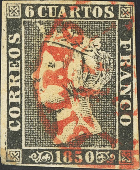 1. 1850. 6 cuartos negro. Matasello baeza BILBAO / VIZCAYA. MAGNIFICO.