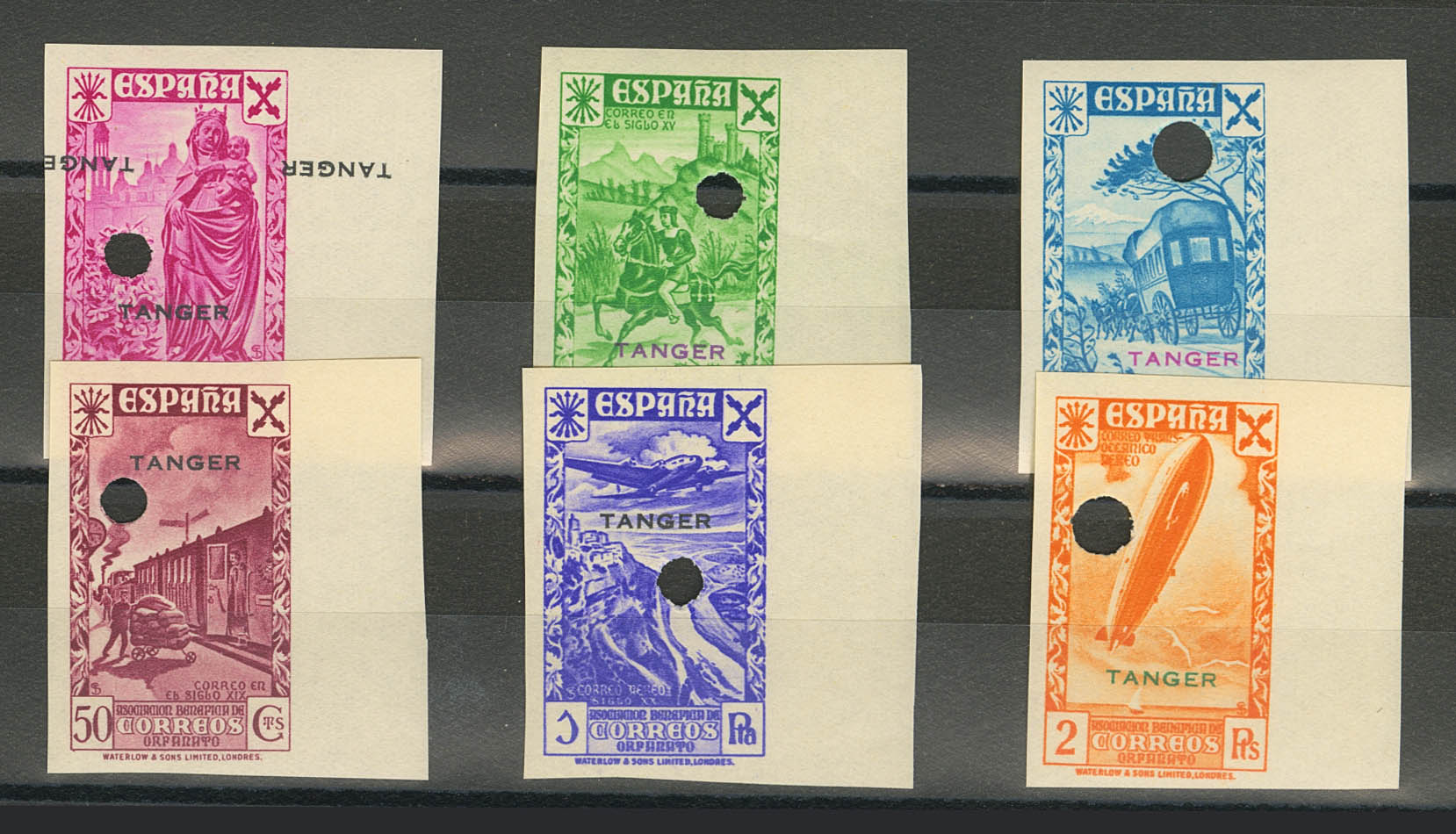 ★★ 6MTshhi, 7/11MTs. 1938. Serie completa, borde de hoja (el 5 cts DOBLE SOBRECARGA, UNA INVERTIDA). SIN DENTAR y TALADRO. MAGNIFICA Y RARA.