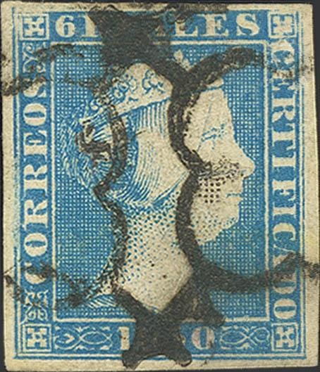 4. 1850. 6 reales azul. MAGNIFICO.