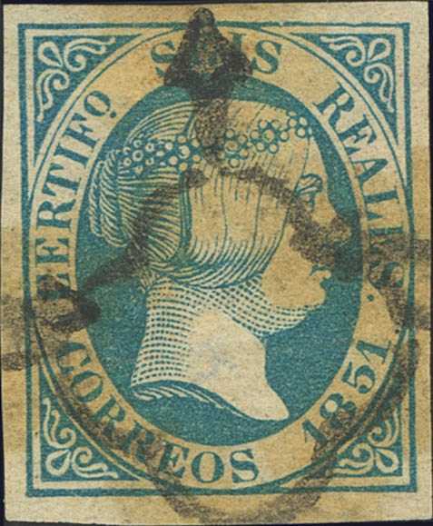 10. 1851. 6 reales azul. Márgenes enormes. MAGNIFICO. Cert. CEM.
