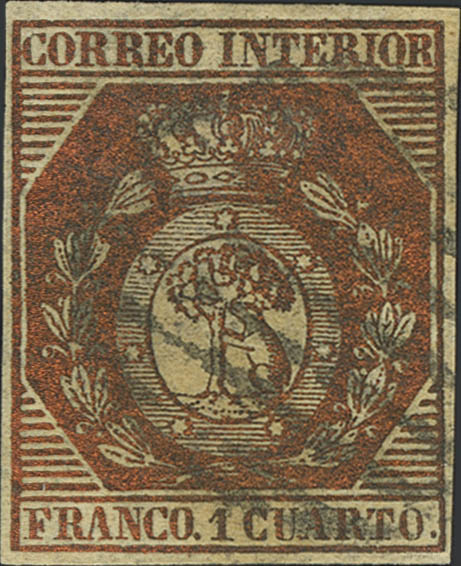 22. 1853. 1 cuarto bronce dorado. Color intenso. MAGNIFICO. Cert. COMEX.