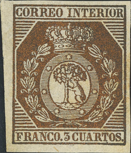 ★ 23F. 1853. 3 cuartos bronce. FALSO SPERATI (Tipo A), sin firma de Jean Sperati y sin marca de la B.P.A. MAGNIFICO.