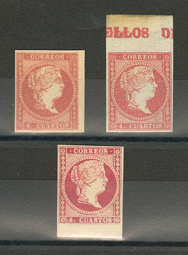 ★★/(★) 48(3). 1855. Conjunto de tres 4 cuartos rojo, de diferentes tipos. MAGNIFICOS.
