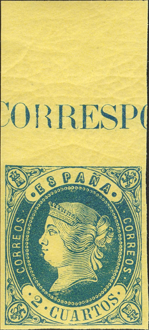 ★★ 57. 1862. 2 cuartos azul, borde de hoja. MAGNIFICO Y ESPECTACULAR.