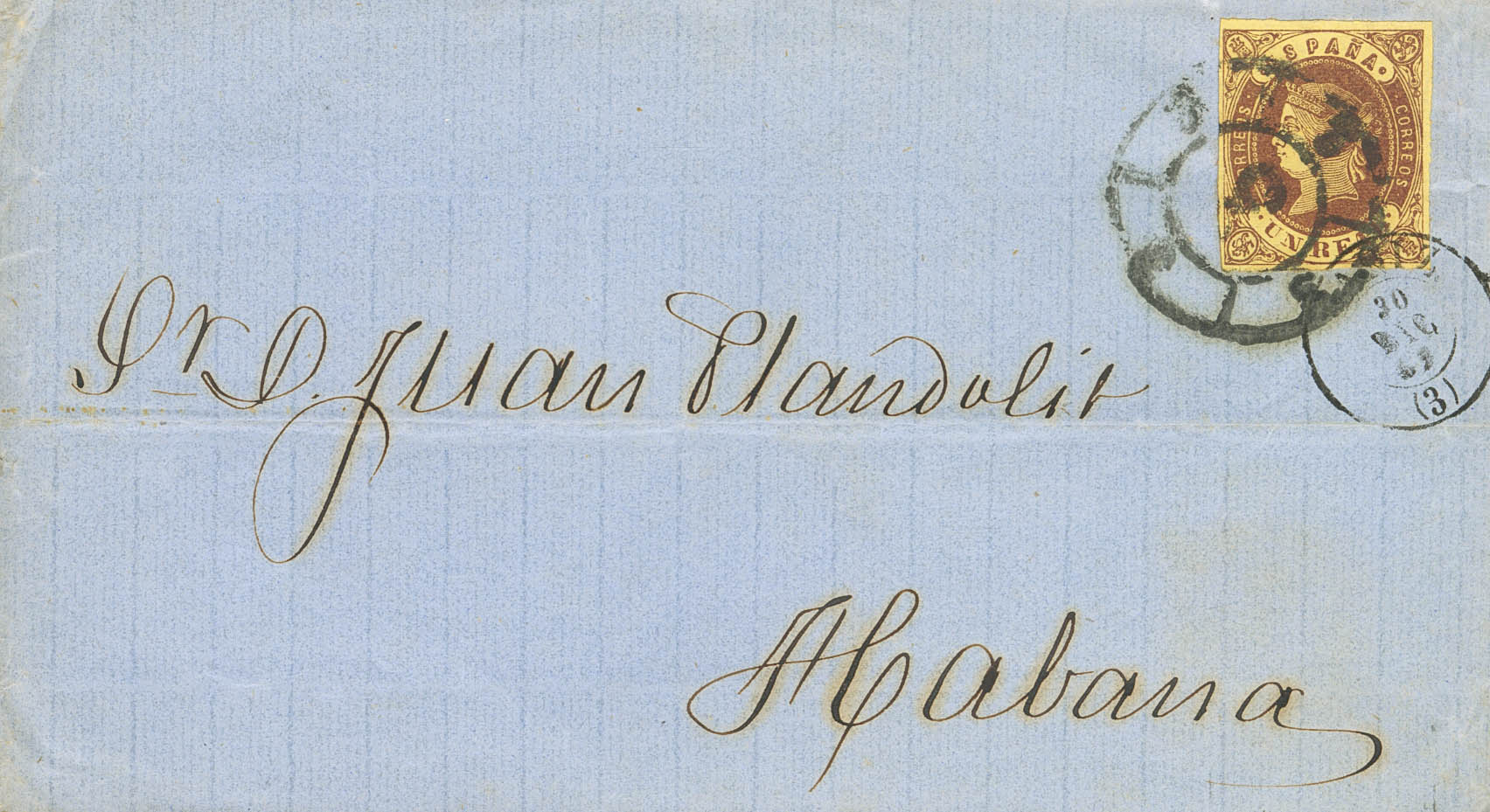 61. 1862. 1 real castaño. CADIZ a LA HABANA (CUBA). MAGNIFICA.