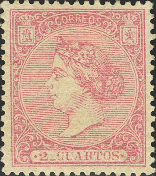 ★ 80. 1866. 2 cuartos rosa. Centraje excepcional. MAGNIFICO. Cert. COMEX.