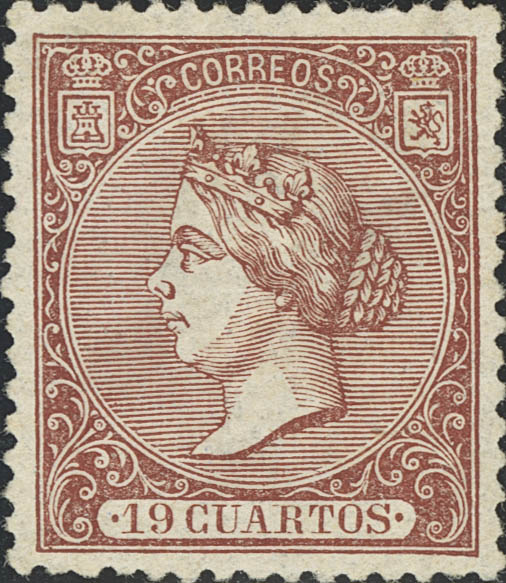 (★) 83. 1866. 19 cuartos castaño. Muy bonito centraje. MAGNIFICO. Cert. GRAUS.