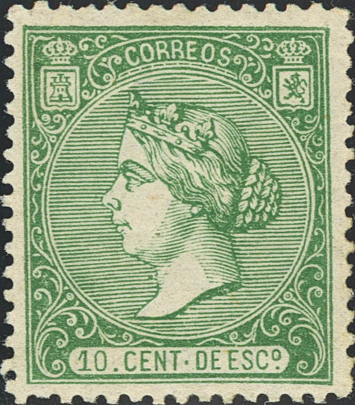 ★ 84. 1866. 10 cts verde. Color intenso. MAGNIFICO.