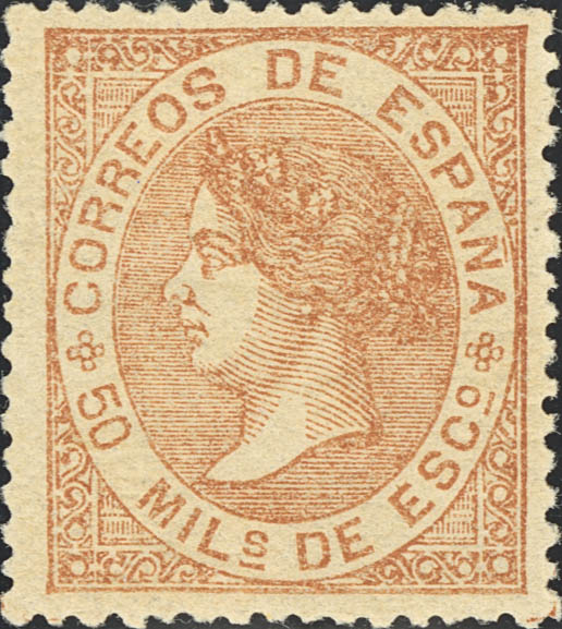 ★ 96. 1867. 50 mils castaño. Bien centrado y color intenso. MAGNIFICO.