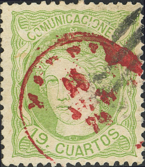 114. 1870. 19 cuartos verde. Bonito centraje. MAGNIFICO.