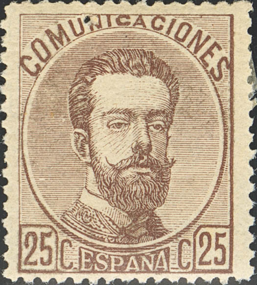 ★ 124. 1872. 25 cts castaño (punto de aguja). MAGNIFICO.