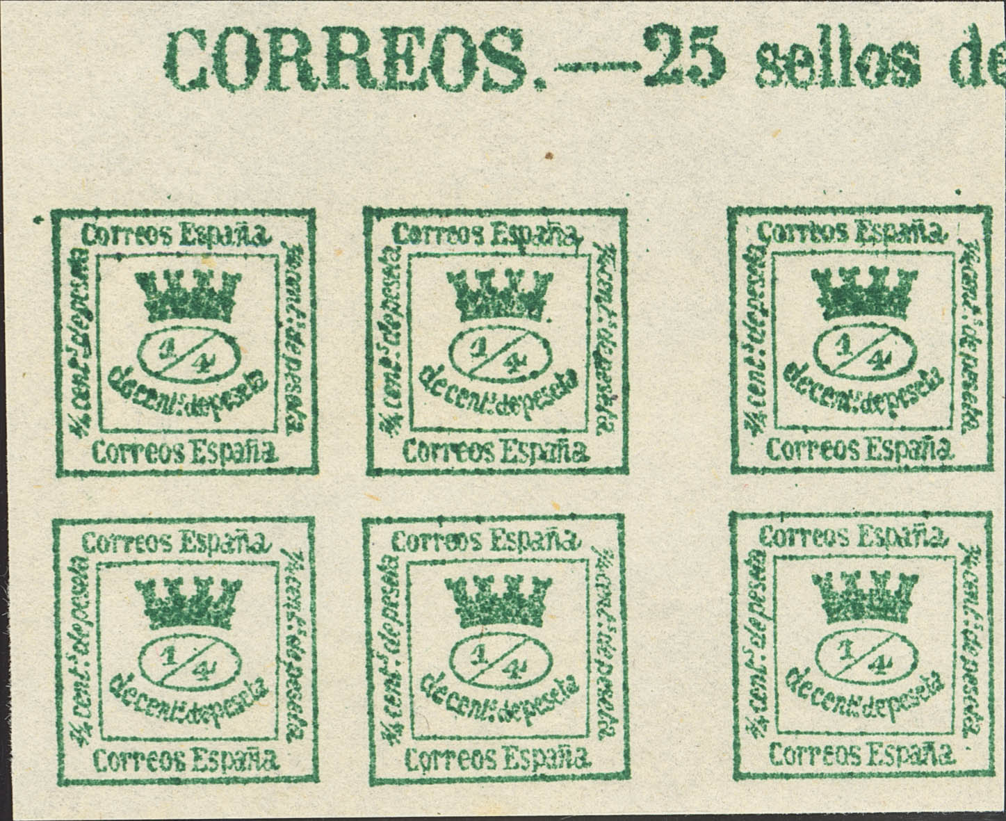 ★★ 130. 1873. 4/4 cts verde, borde de hoja junto a dos sellos del ¼. MAGNIFICO. Cert. GRAUS.