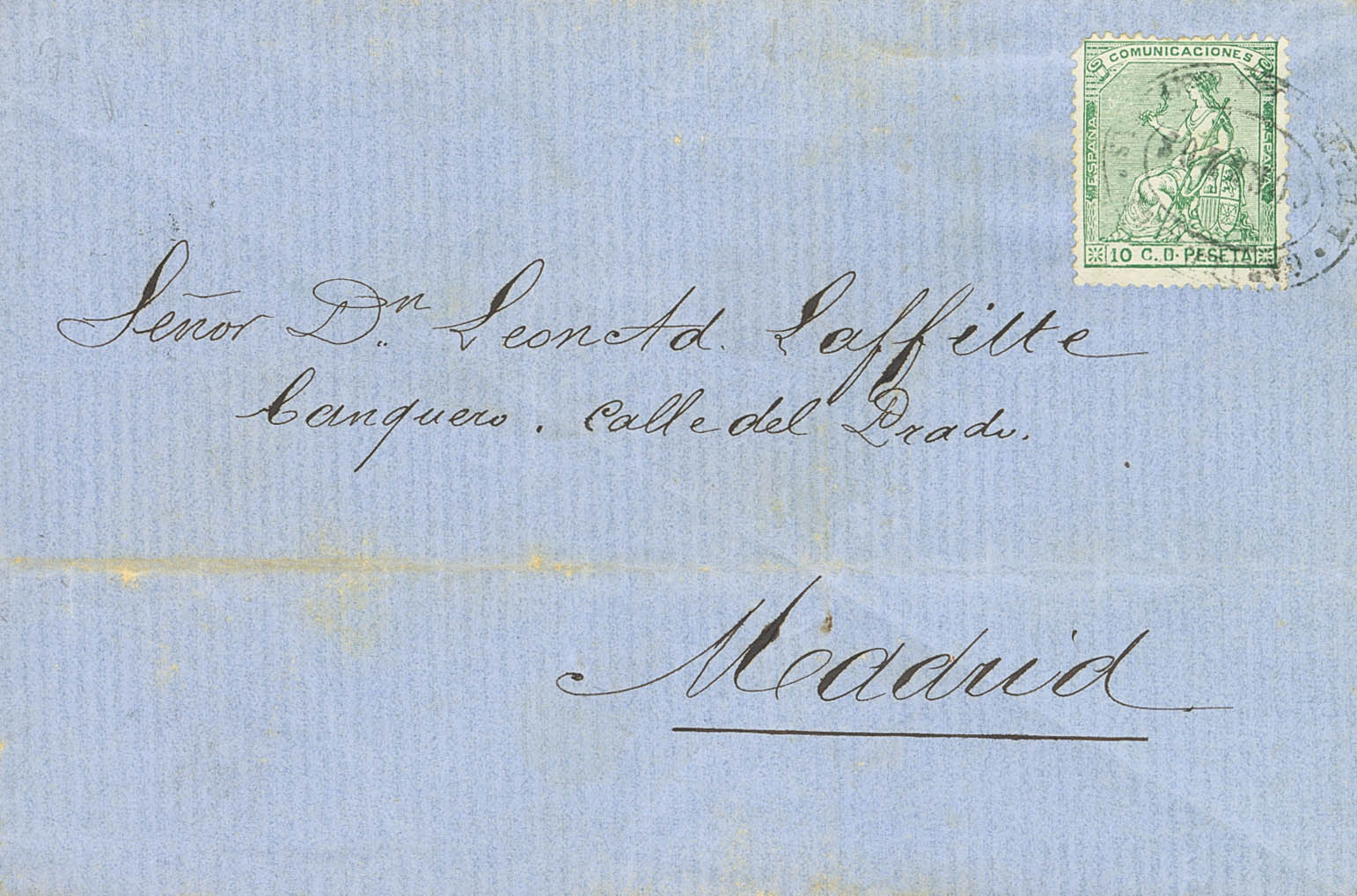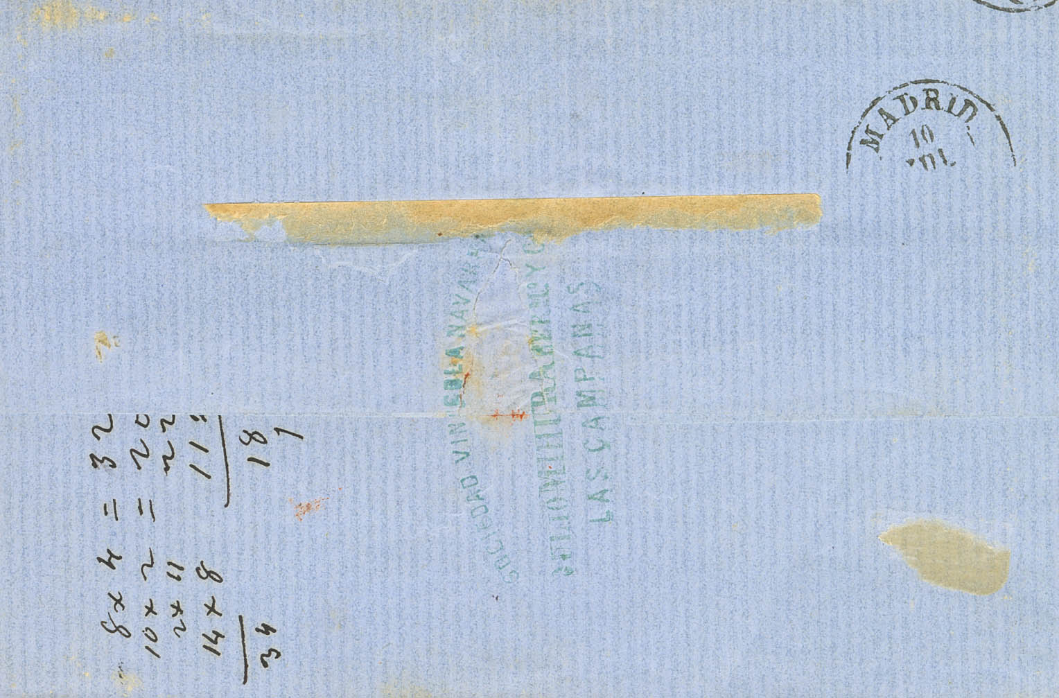 133. (1873ca). 10 cts verde. LAS CAMPANAS (NAVARRA) a MADRID. Matasello especial CARTERIA DE / CORREOS / BIURRUN Y LAS CAMPANAS, en negro. MAGNIFICA Y MUY RARA.