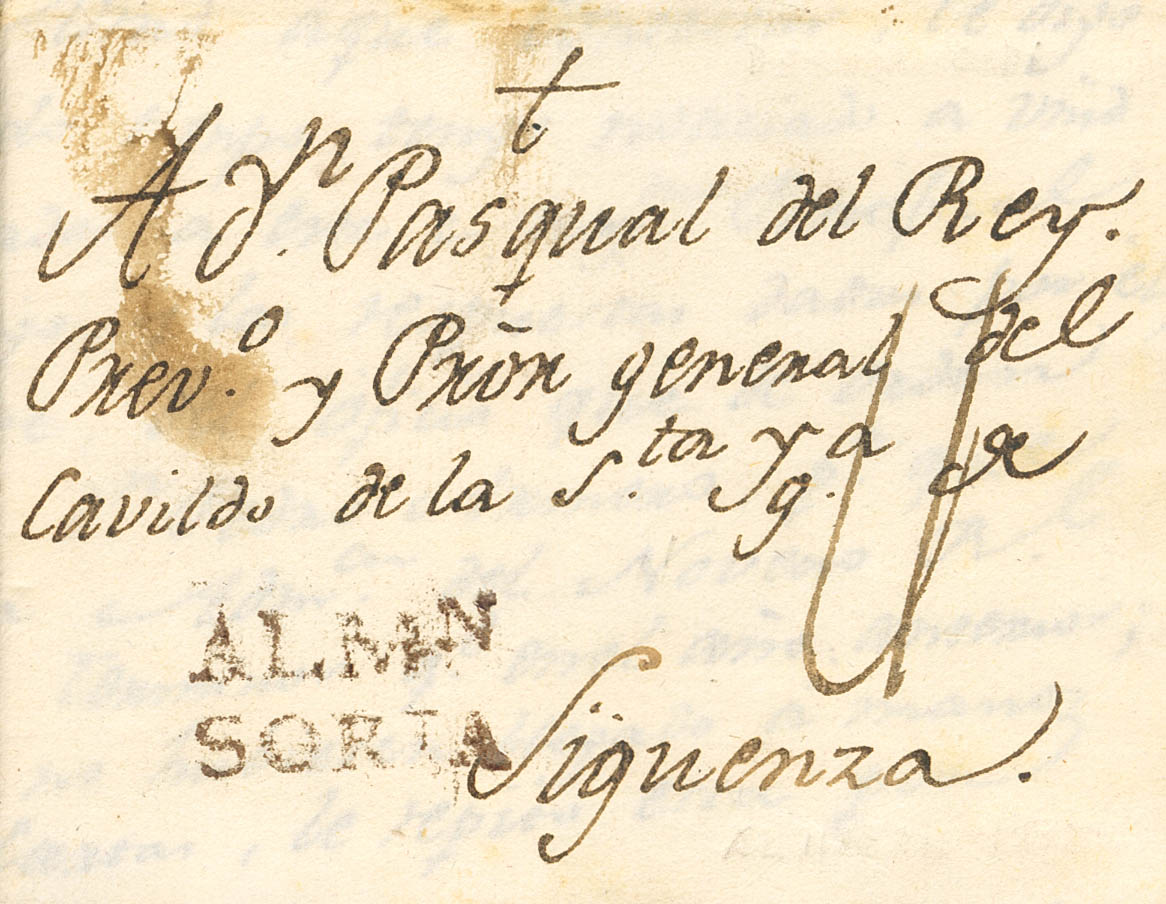 1802. BERLANGA DE DUERO (SORIA) a SIGÜENZA. Marca ALMN. / SORIA, en marrón de Almazán (P.E.2) edición 2004. MAGNIFICA Y RARISIMA.