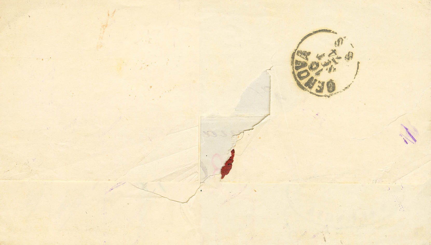 149. 1874. 50 cts amarillo. VALENCIA a GENOVA (ITALIA). Matasello francés "2240", aplicado en tránsito. MAGNIFCA Y RARA.