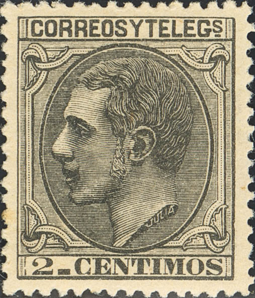 ★ 200. 1879. 2 cts negro. Centraje y color excepcional. PIEZA DE LUJO. Cert. GRAUS.