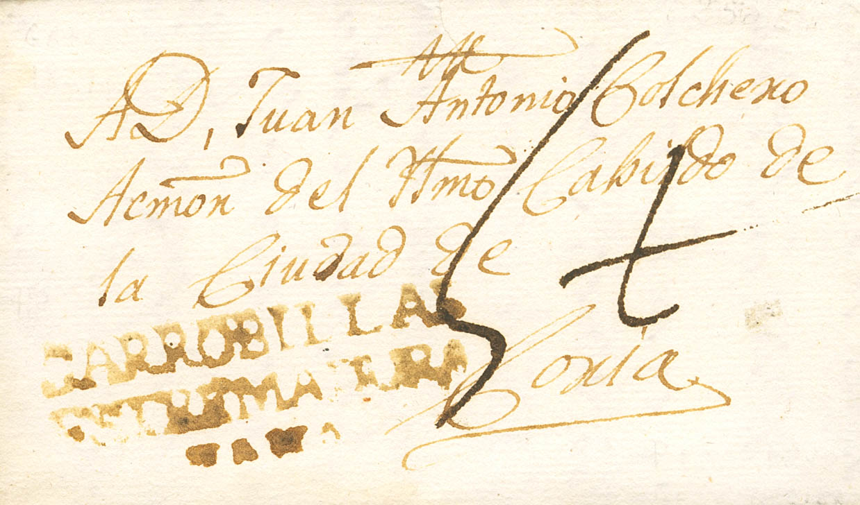 1829. GARROVILLAS (CACERES) a CORIA. Marca GARROBILLAS / ESTREMADURA / BAXA, en tinta de escribir (P.E.2) edición 2004. MAGNIFICA.