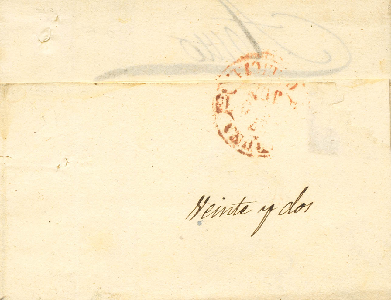 1849. CORCUBION (LA CORUÑA) a CARBALLO. Marca CORCVBION / GALICIA (P.E.3) edición 2004 y de abono "A", de Santiago, ambas en rojo. MAGNIFICA.