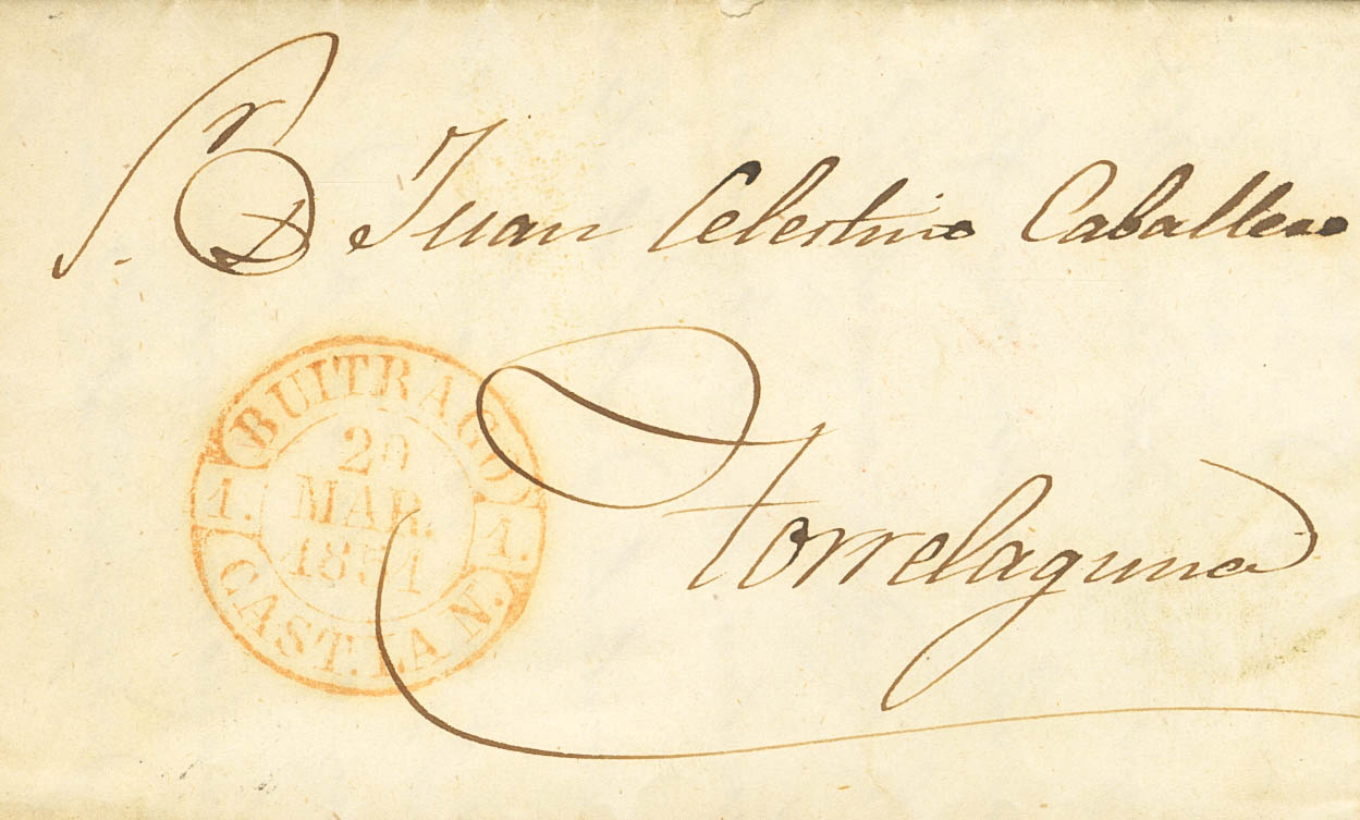 1851. BRAOJOS (MADRID) a TORRELAGUNA. Baeza BUITRAGO / CAST.LA N., en rojo. MAGNIFICA.
