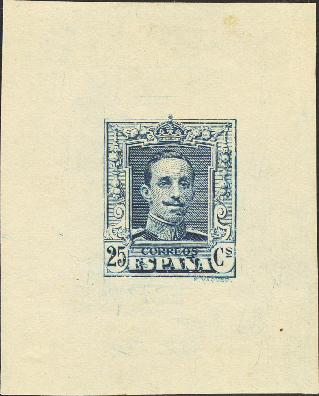 (★) NE24P. 1922. 25 cts azul NO EMITIDO. ENSAYO DE PLANCHA. MAGNIFICO Y ESPECTACULAR.