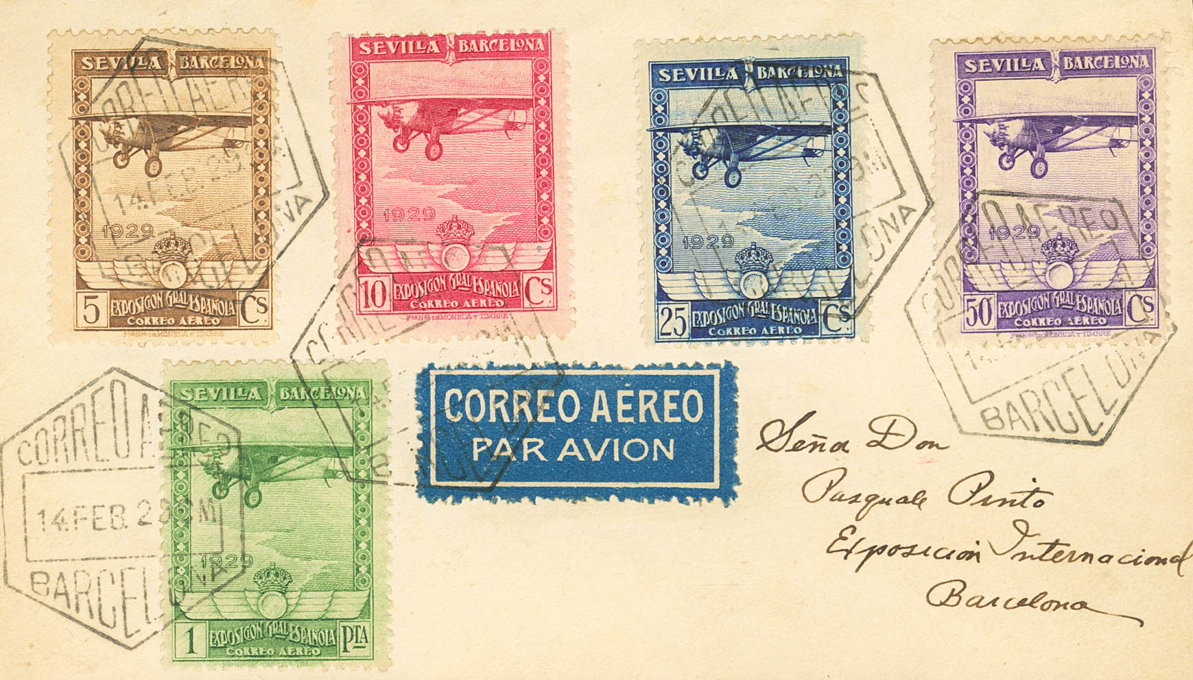 448/53. 1989. Serie completa (a falta del 4 pts). Carta Filatélica de Correo Interior de BARCELONA. MAGNIFICA.