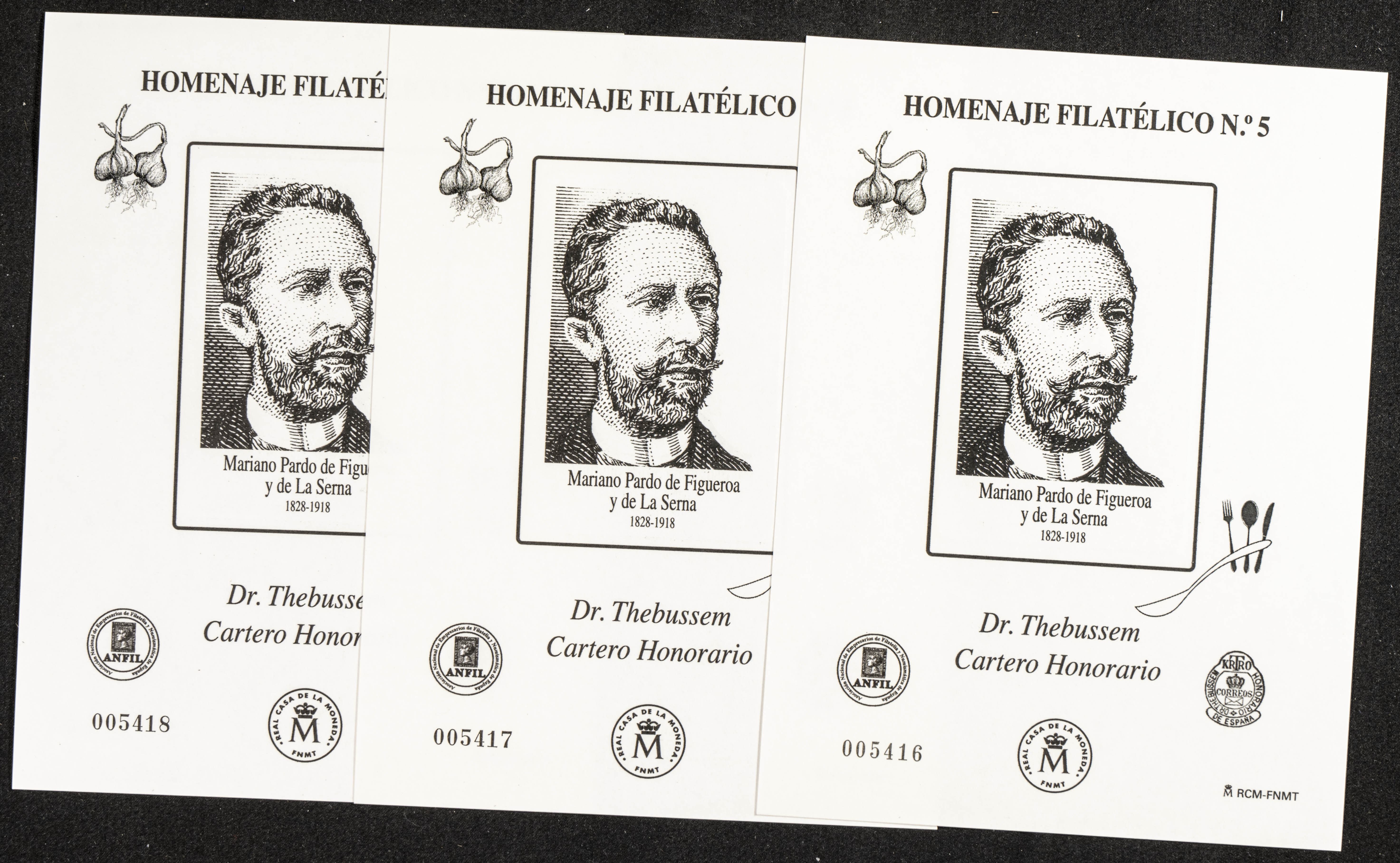 ★★ 9A(3). 2014. Tres hojitas de Homenaje Filatélico. THEBUSSEM. MAGNIFICAS. Edifil 2025: 300 Euros