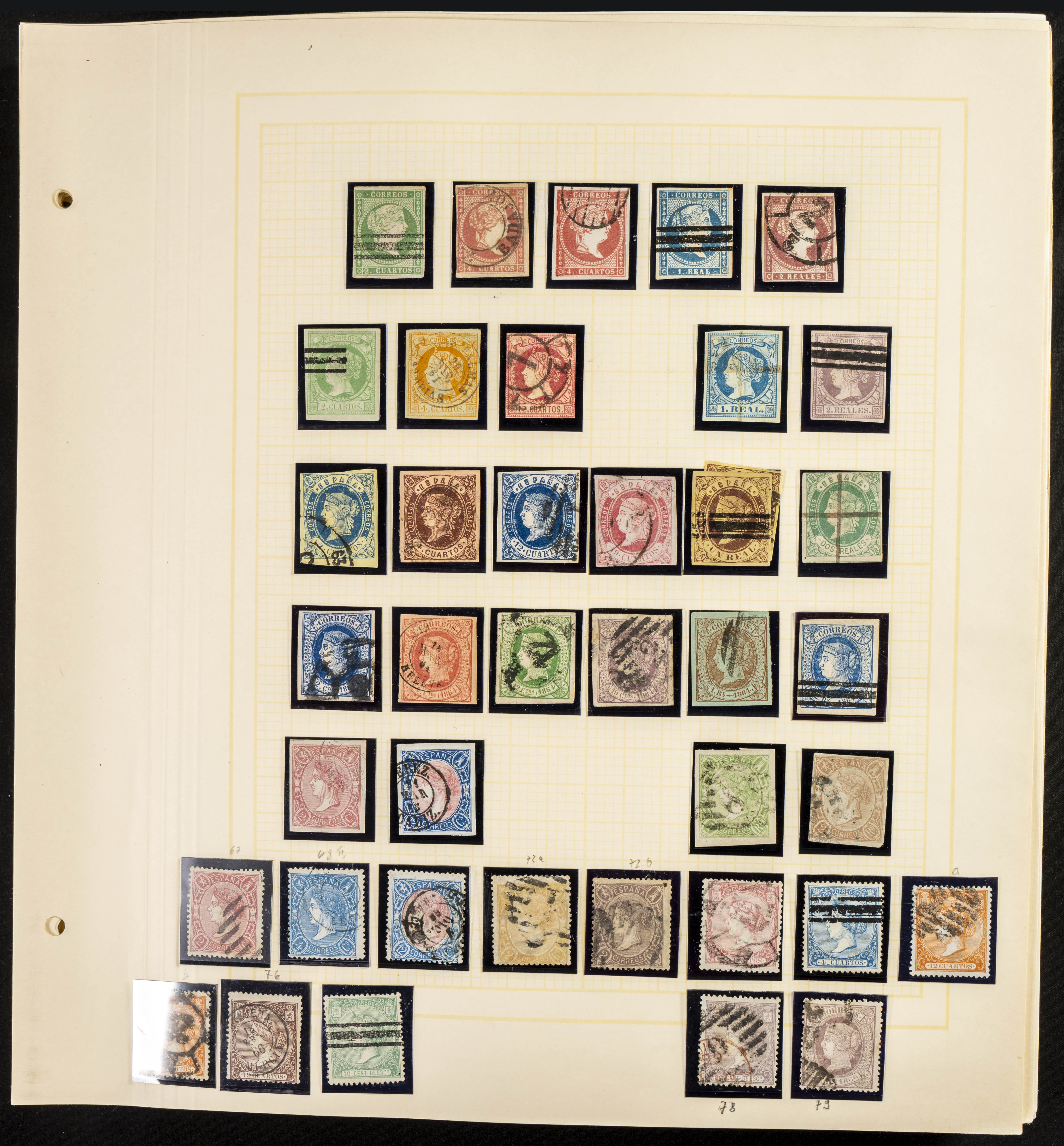 ★/(1850ca). Interesante colección entre 1850 y 1992, en nuevo y usado, la parte clásica mayoritariamente usada e incluyendo numerosos sellos de valor medio (5 reales, 6 reales, 10 reales y 19 cuartos varios), a partir de 1901 la mayoría usado hasta 1930 y el resto mezclado hasta el final, incluye Quijote usada, Cruz Roja de 1926 terrestre y aérea (esta última en carta), Sociedad de Naciones, Montserrat sobrecargada de 1938 (**), Mano (**), Falla y Zuloaga (**), etc. ALTISIMO VALOR DE CATALOGO. IMPRESCINDIBLE EXAMINAR.