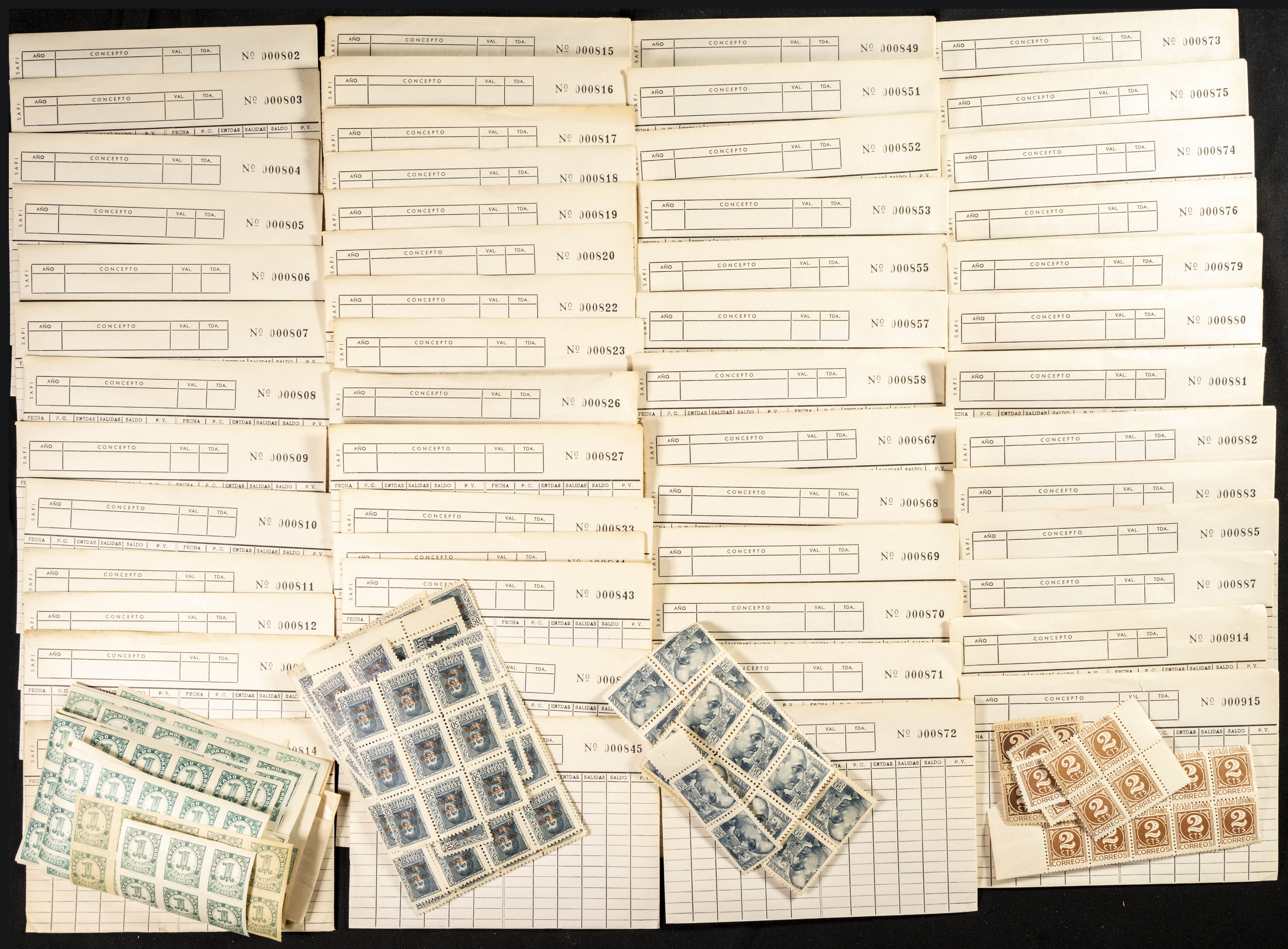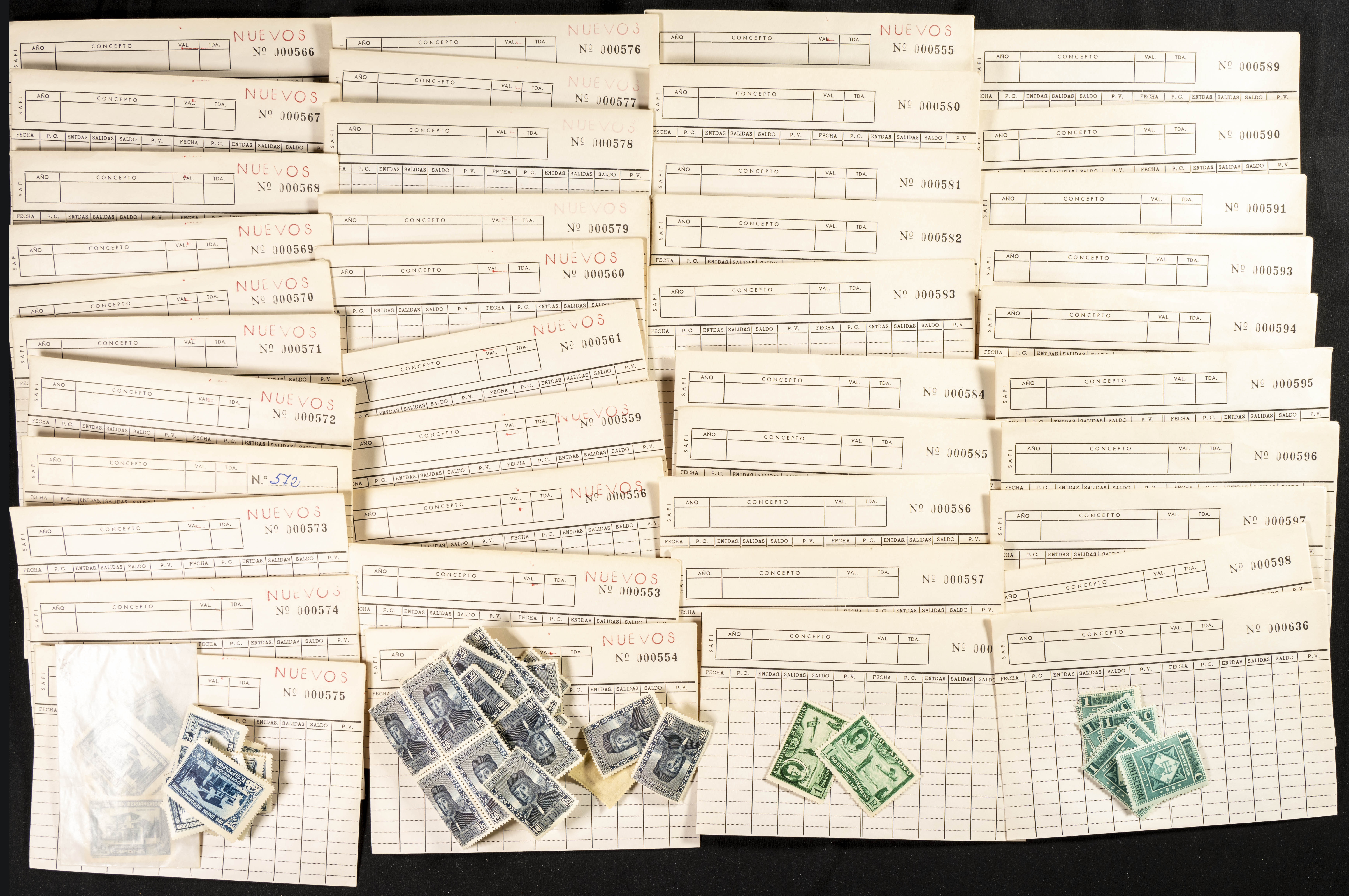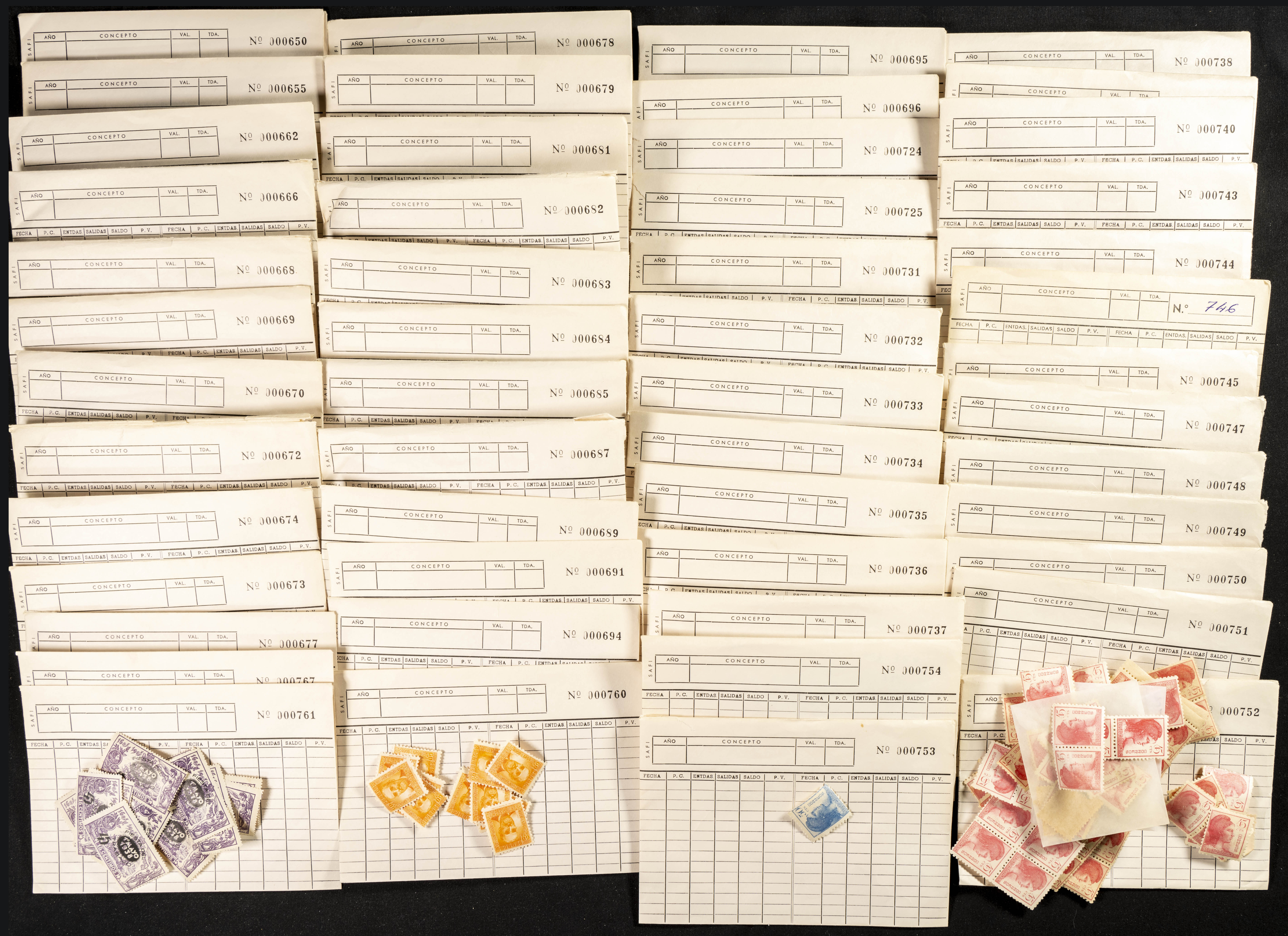 ★★/★(1928ca). Interesantísimo conjunto-stock de sellos sueltos del 1º Centenario entre 1928 y 1949, en nuevo (alguno usado) y organizado en sobres con indicación del número de catálogo y en varios casos con repeticiones hasta cincuenta unidades, incluye series completas, algunas en bloques y repetidas. ALTISIMO VALOR DE CATALOGO. A EXAMINAR.