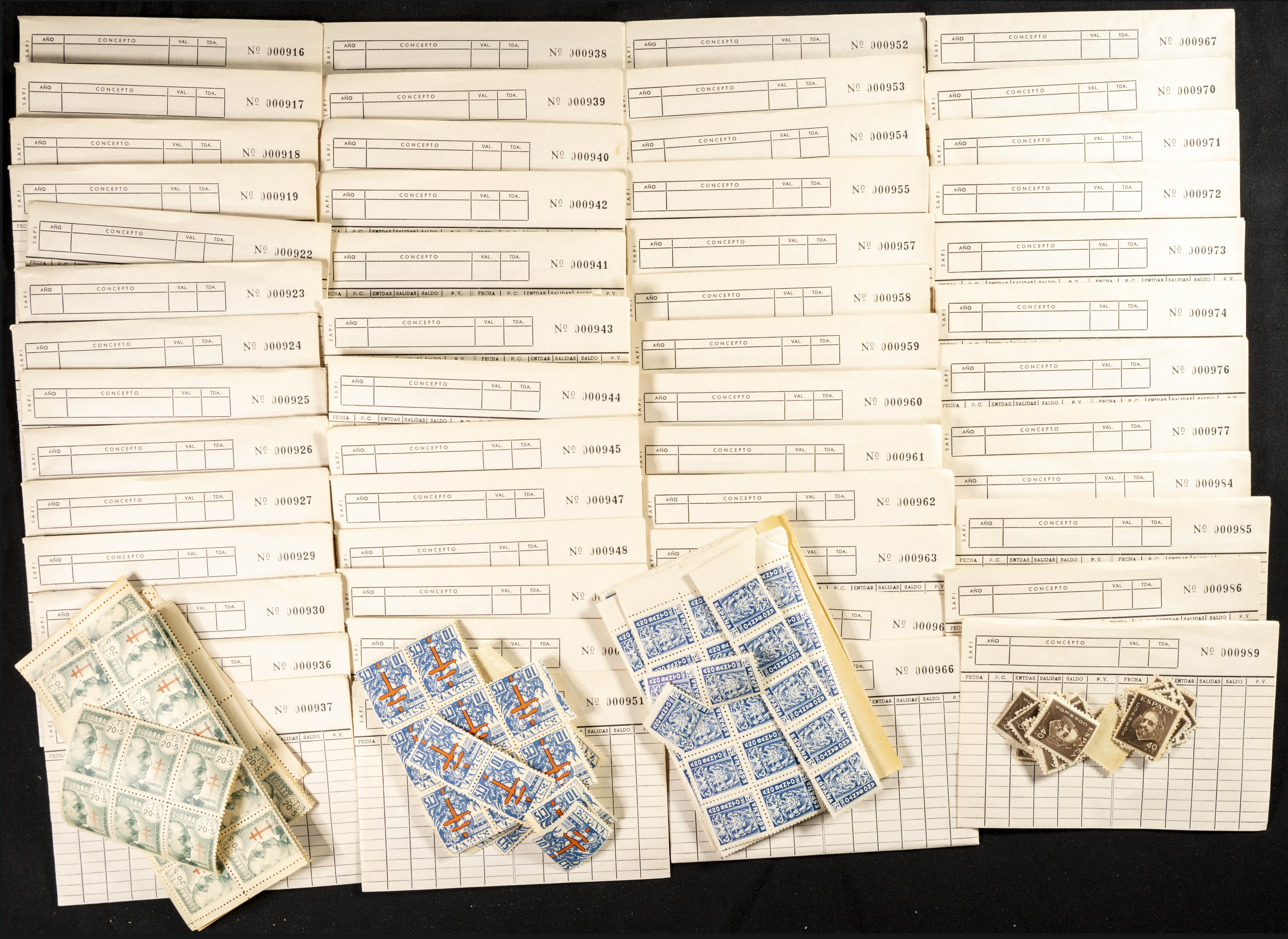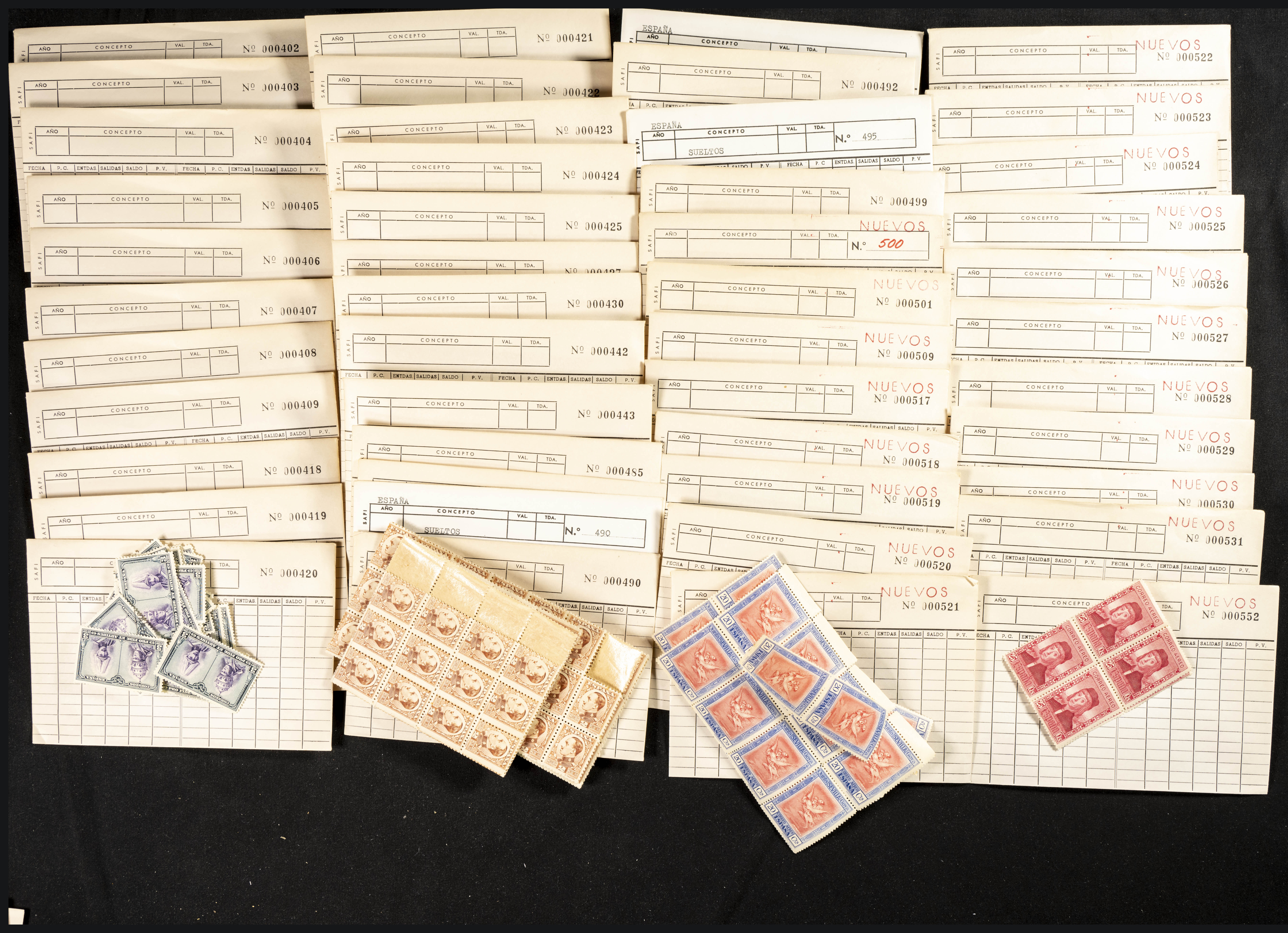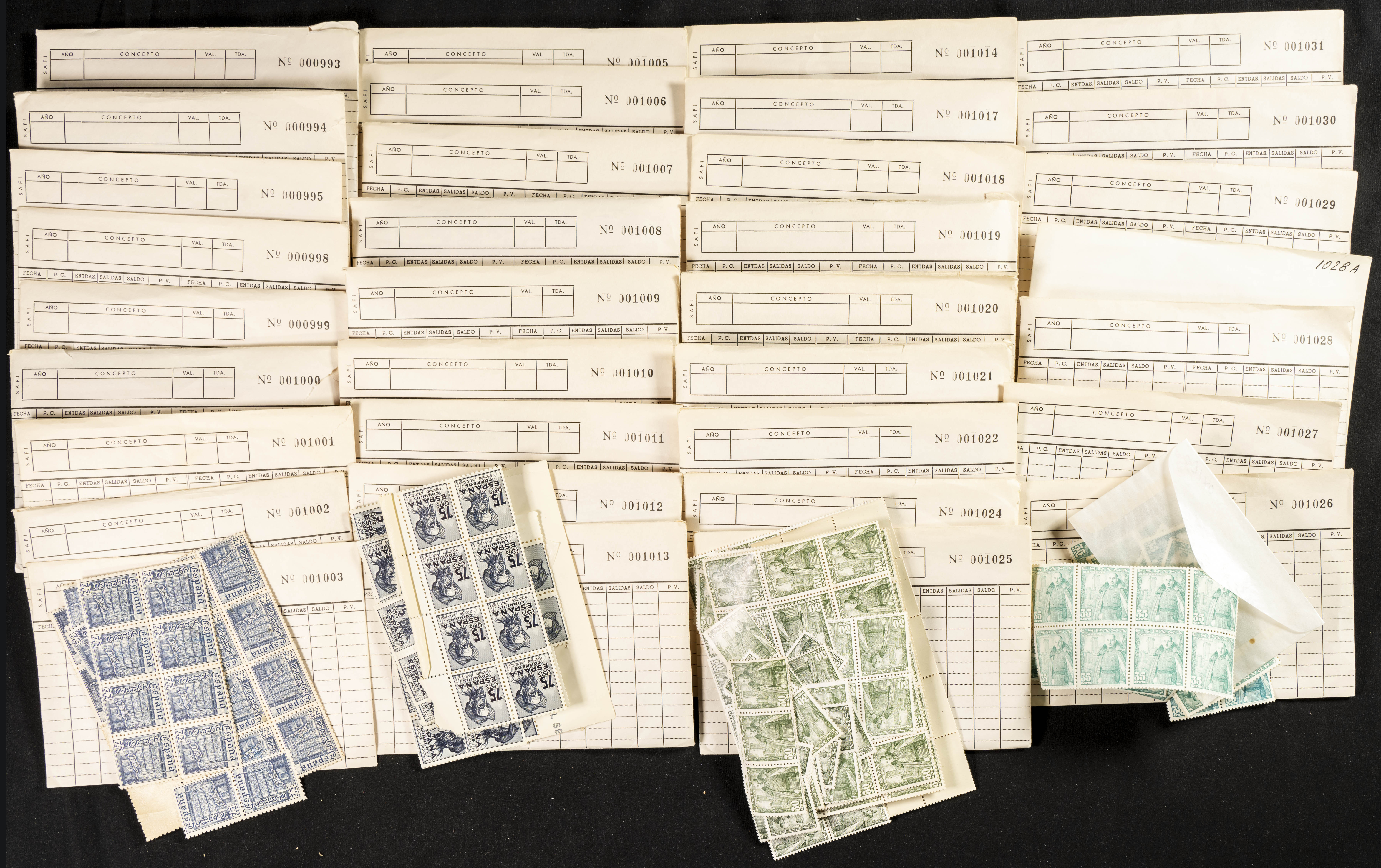 ★★/★(1928ca). Interesantísimo conjunto-stock de sellos sueltos del 1º Centenario entre 1928 y 1949, en nuevo (alguno usado) y organizado en sobres con indicación del número de catálogo y en varios casos con repeticiones hasta cincuenta unidades, incluye series completas, algunas en bloques y repetidas. ALTISIMO VALOR DE CATALOGO. A EXAMINAR.