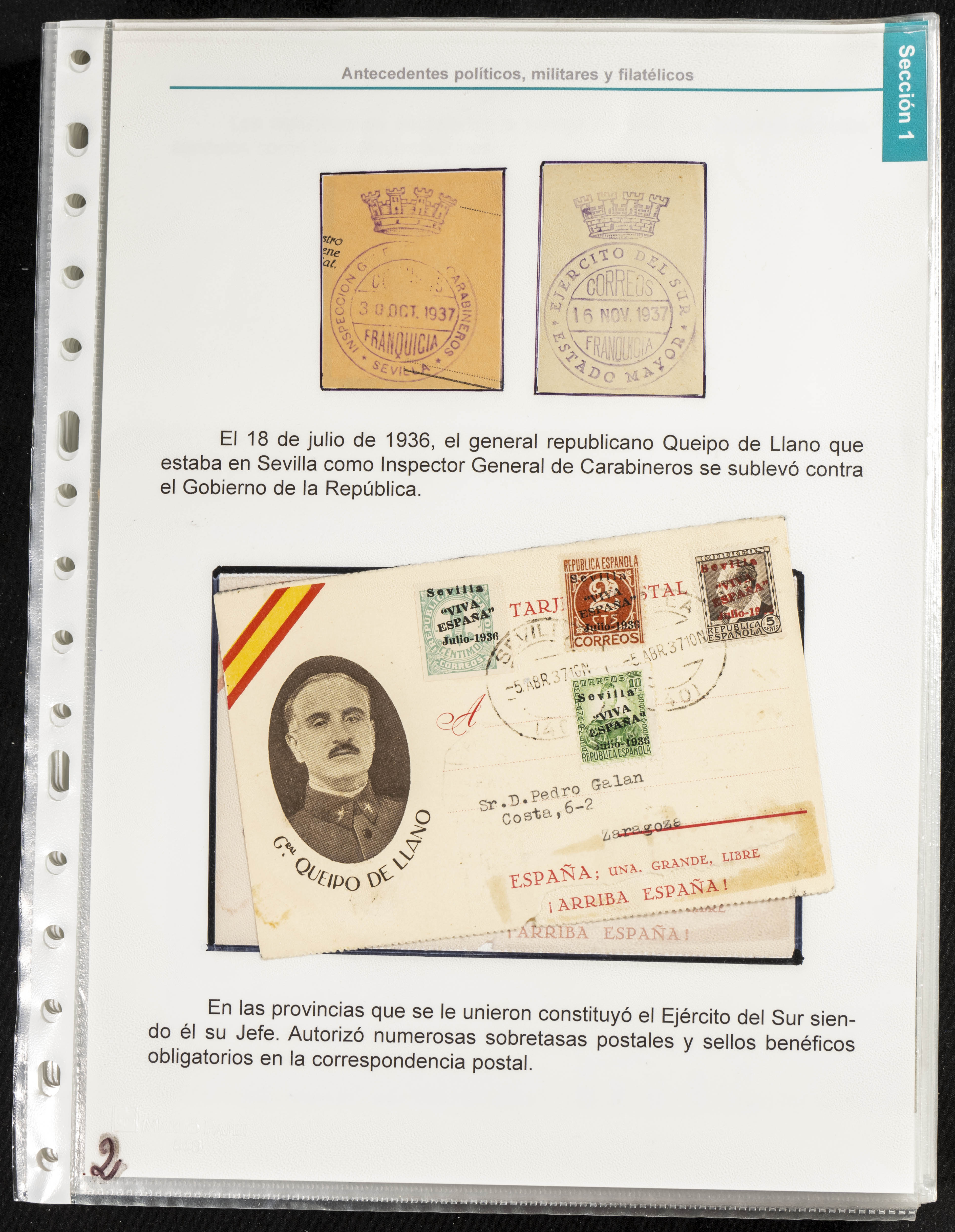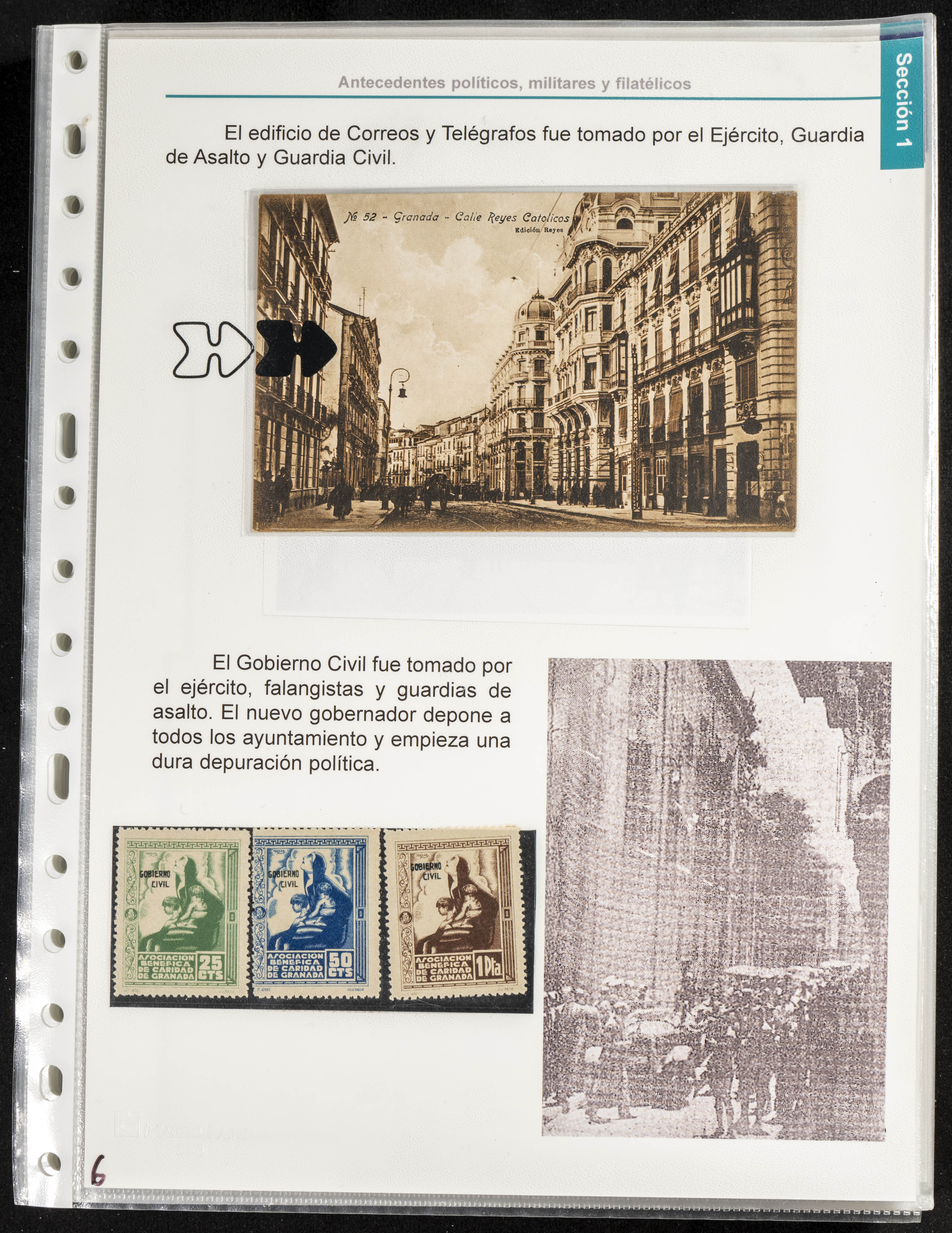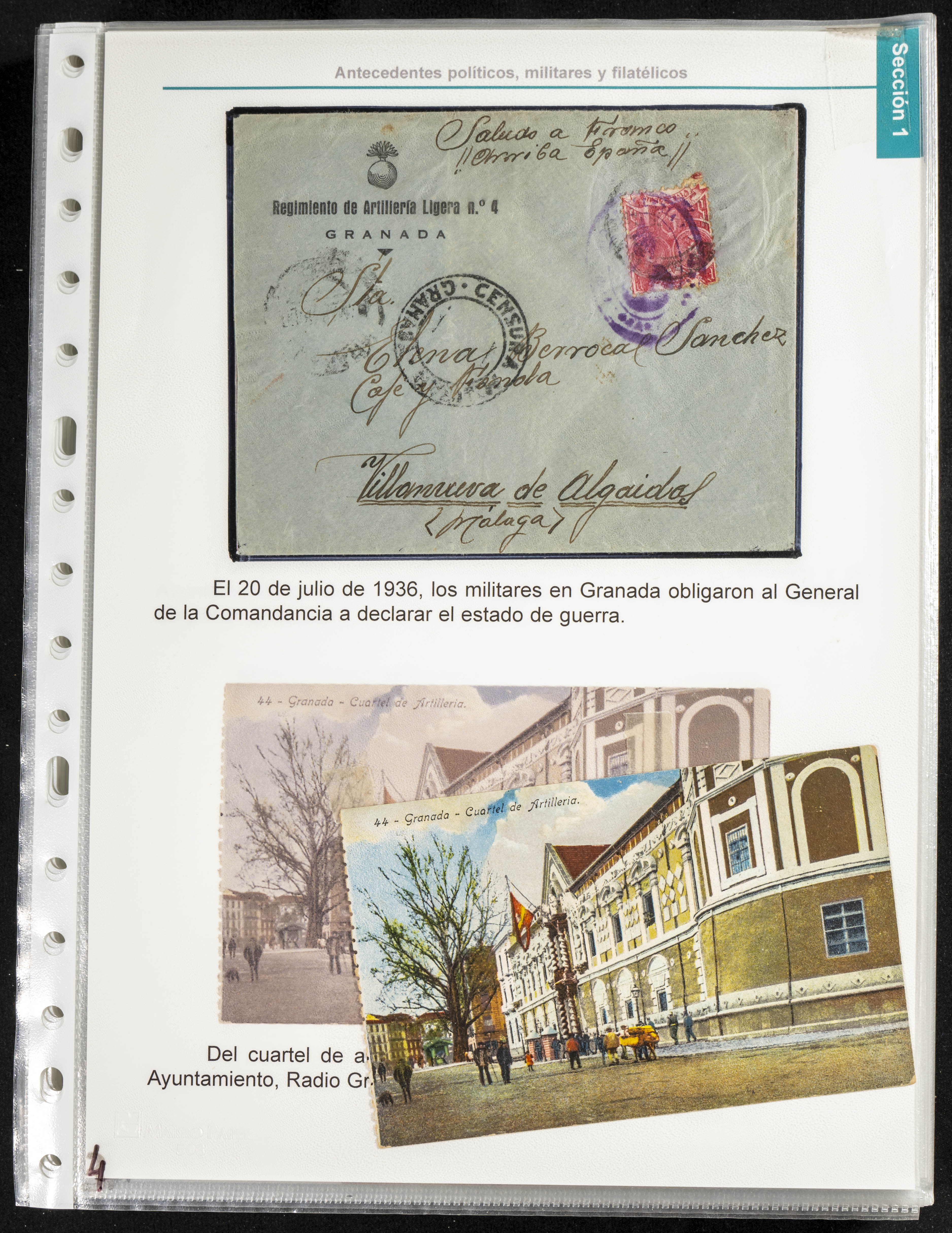 ★★/1936. Espectacular colección especializada montada en hojas de exposición de la emisión de Granada de 1936, incluye un sello nuevo, decenas de sellos usados, la mayoría sobre fragmento y varios con franqueo acompañante, un bloque de cuatro, bloque de seis y docenas de cartas, varias con sellos bisectados, con viñetas de Granada, bloque de cuatro sobre frontal además de una serie no emitida matasellada y otra sobre dos cartas circuladas. MAGNIFICO CONJUNTO, SE TRATA DE UNO DE LOS ESTUDIOS MAS IMPORTANTES DE LA EMISION. IMPRESCINDIBLE EXAMINAR.